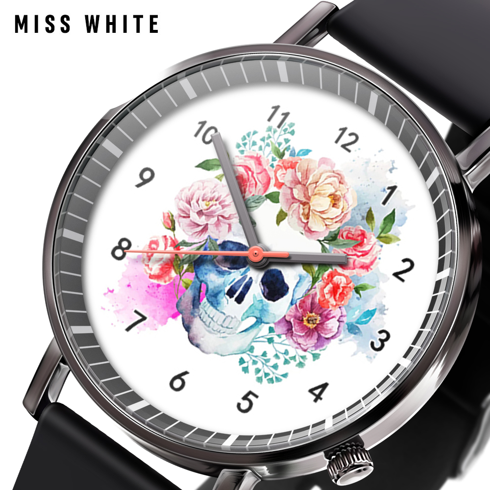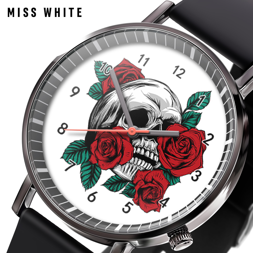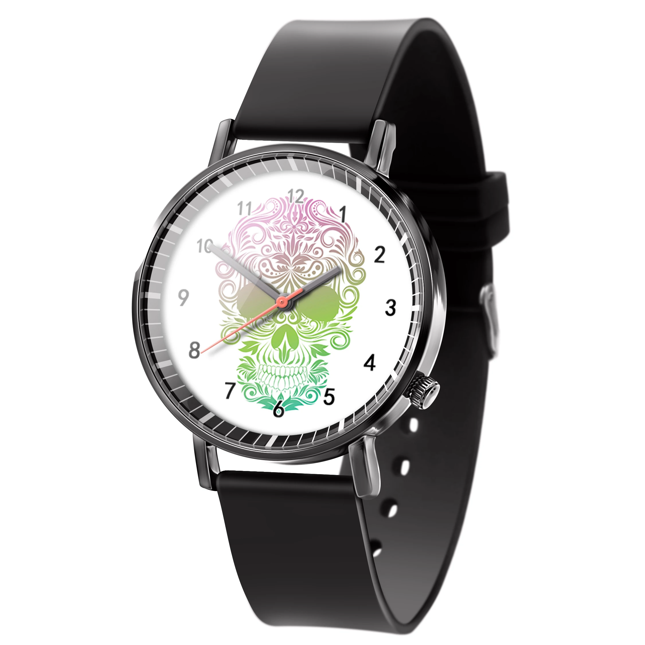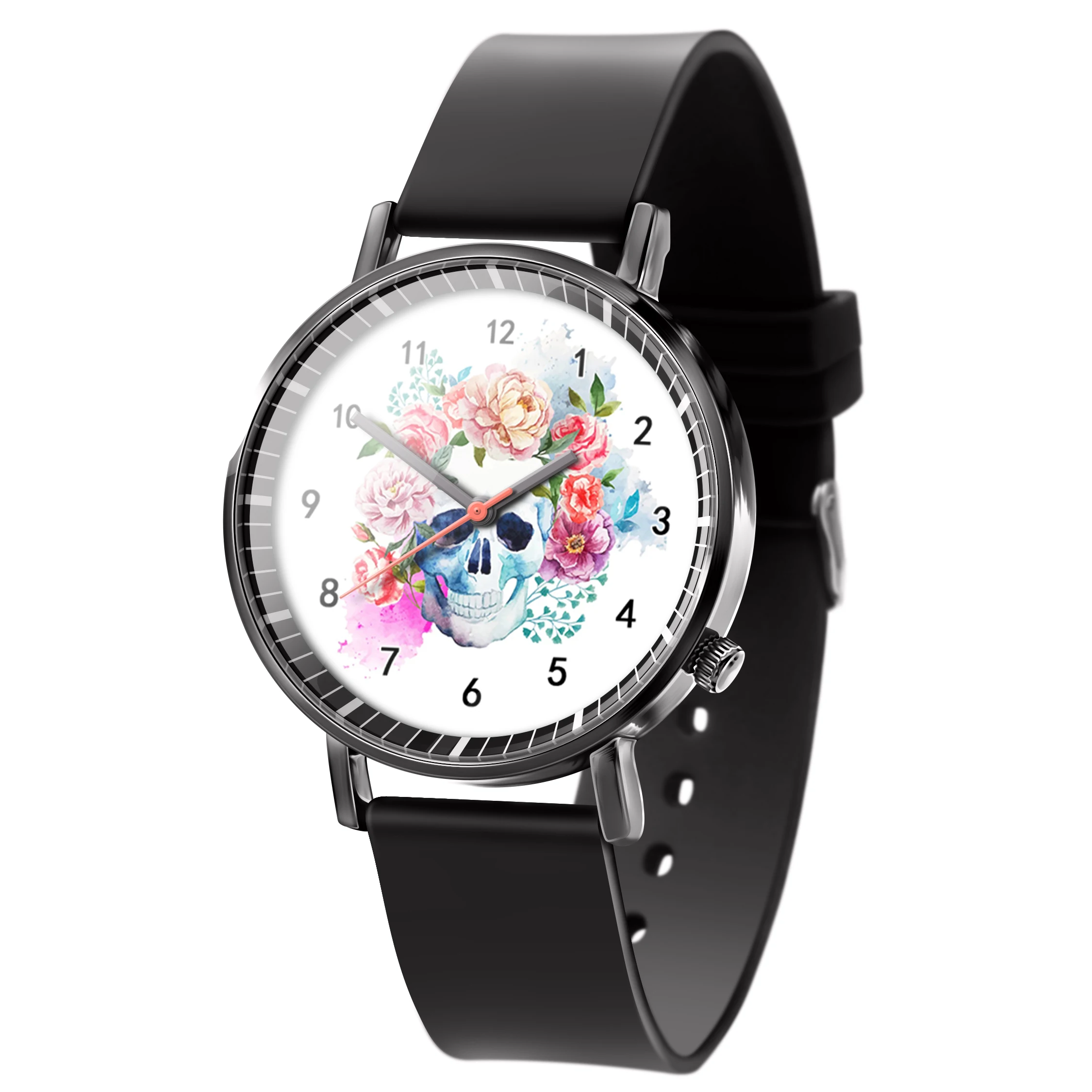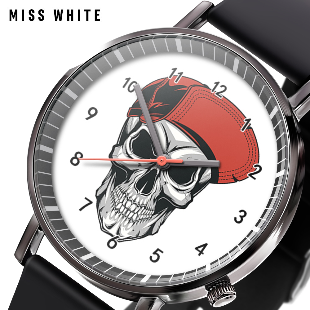 « Skullwatch » – Montres skull homme, bracelet en caoutchouc, noir et blanc, tête de mort, à Quartz, sport, nouvelle tendance.