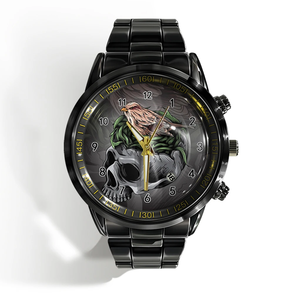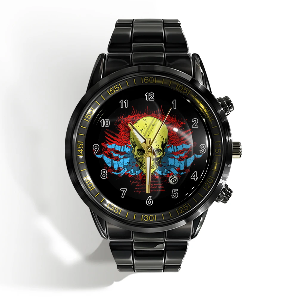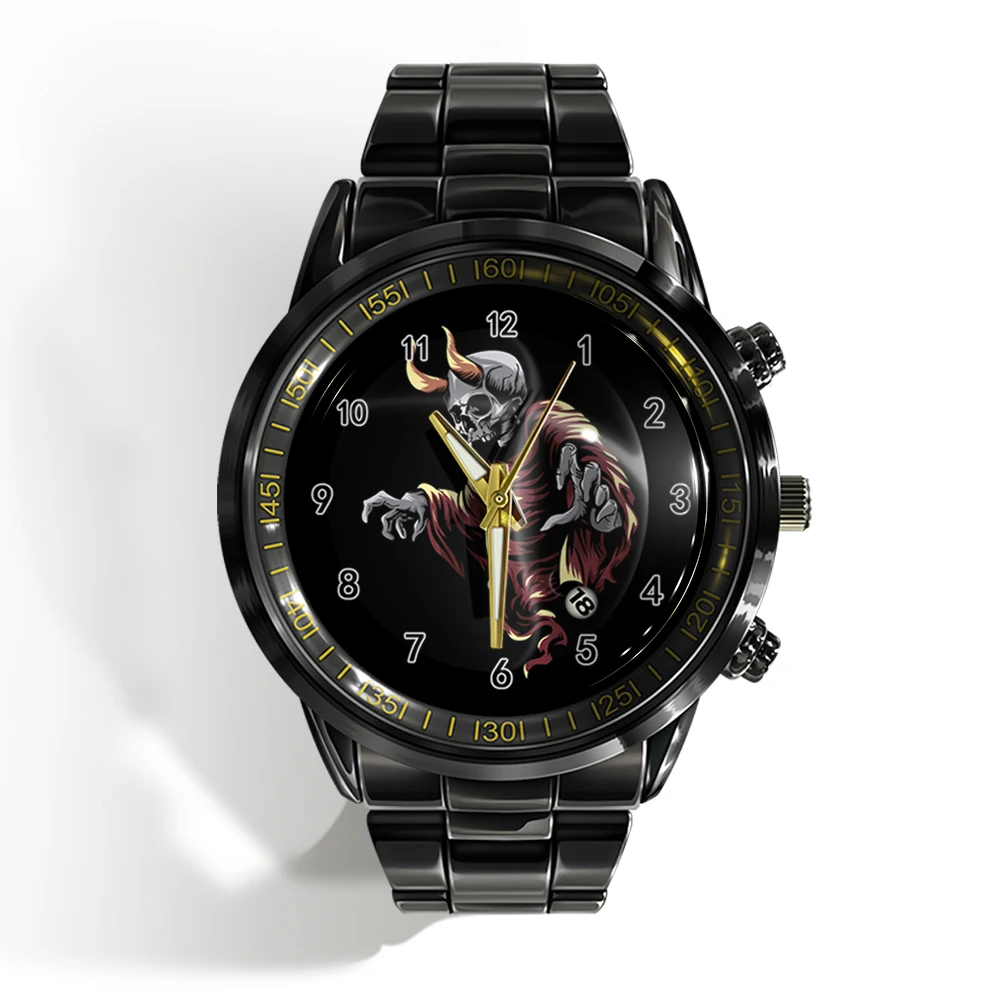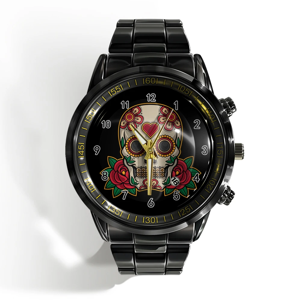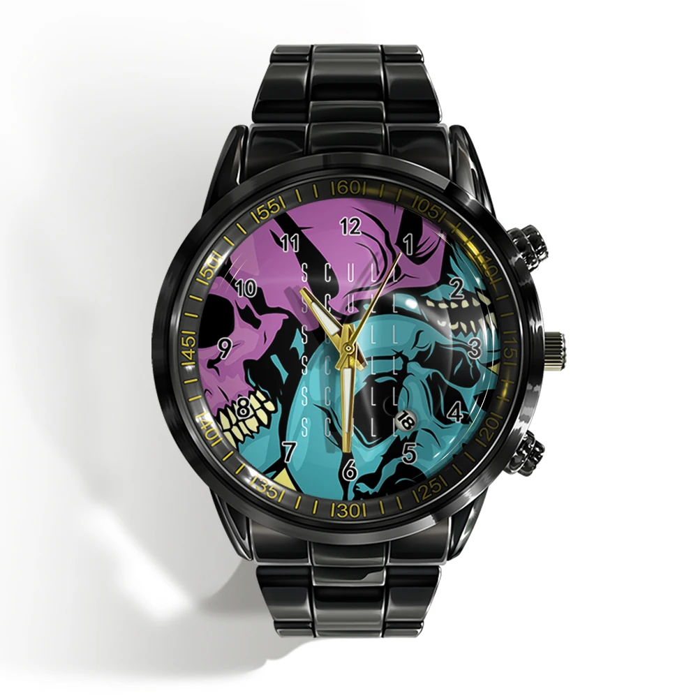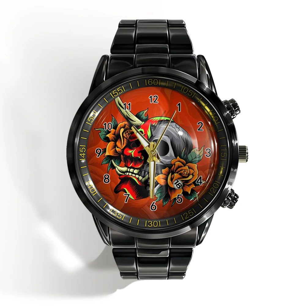Cette montre unique est faite pour vous ! Dotée d’un cadran plat noir et blanc avec un crâne d’horreur, cette montre de sport à quartz est à la fois élégante et effrayante. Avec le calendrier intégré, vous serez toujours à l’heure et vous aurez fière allure. 🕰️