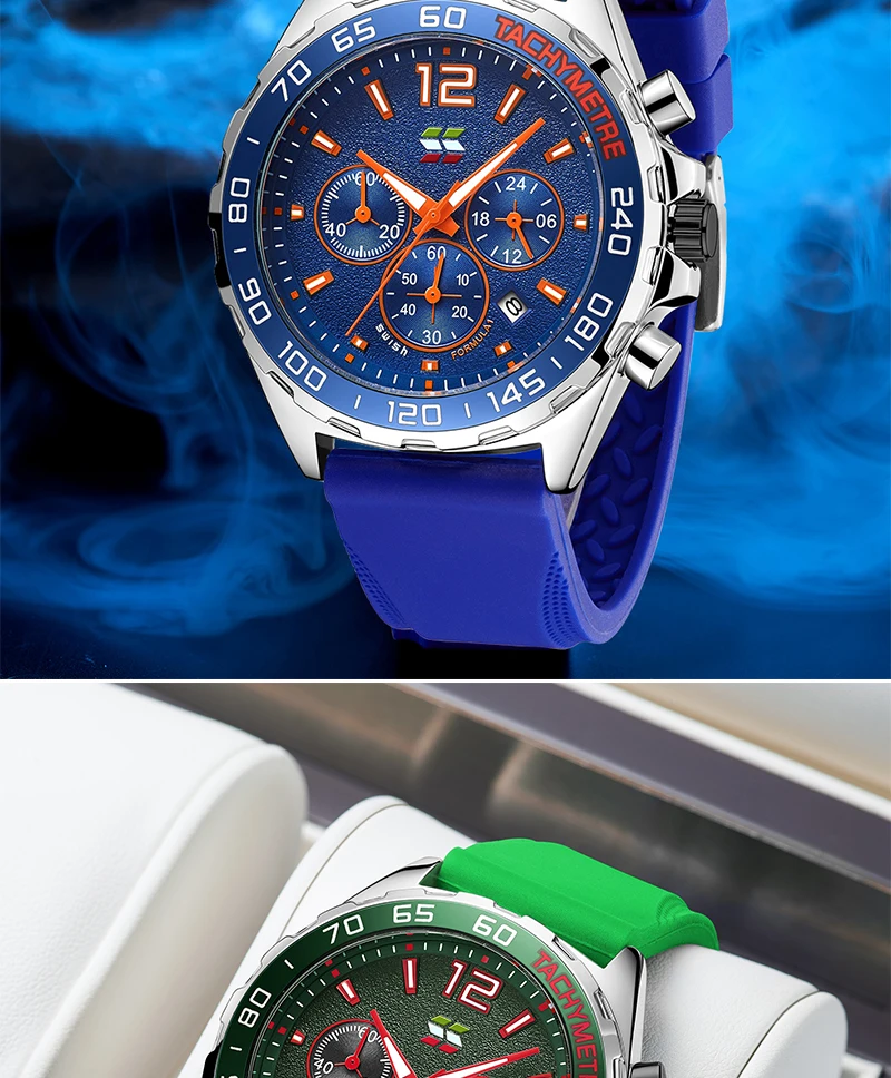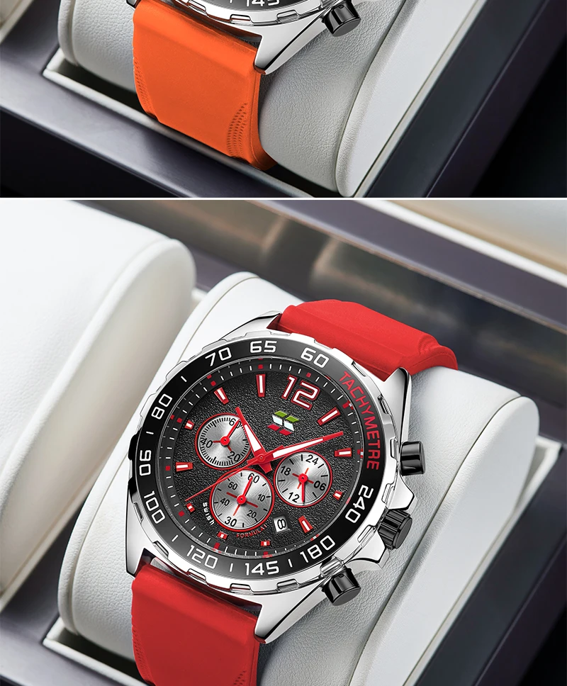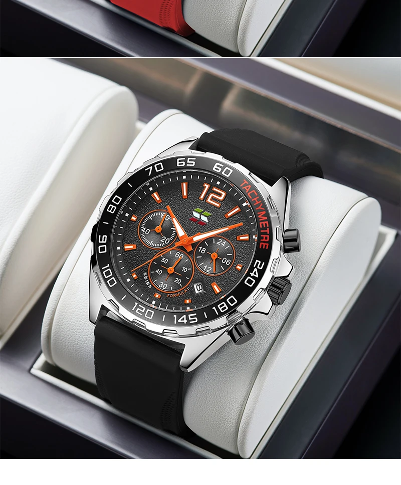 SWISH Sports Montre à quartz pour homme Trois yeux Six aiguilles Bracelet en silicone 24 heures Chronographe multifonction Relogio Masculinob Cadeau