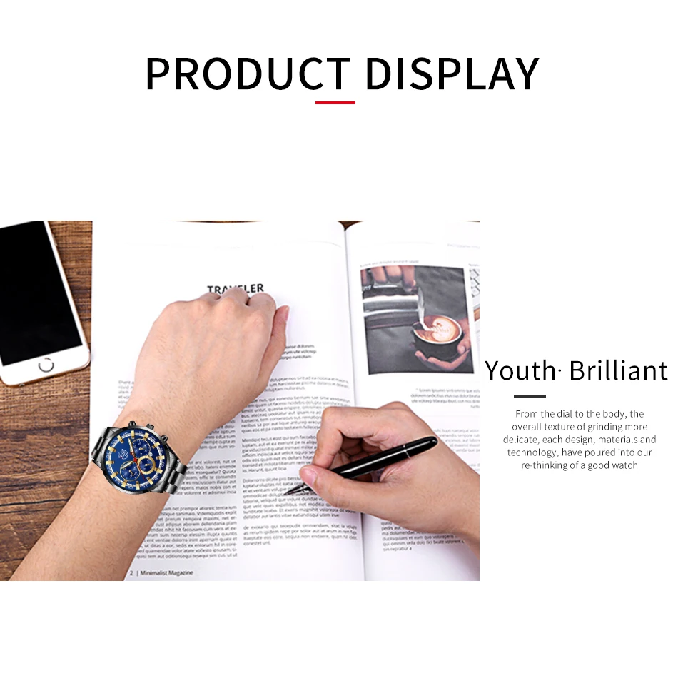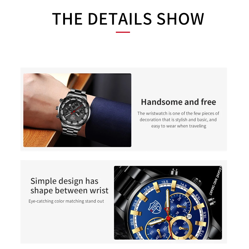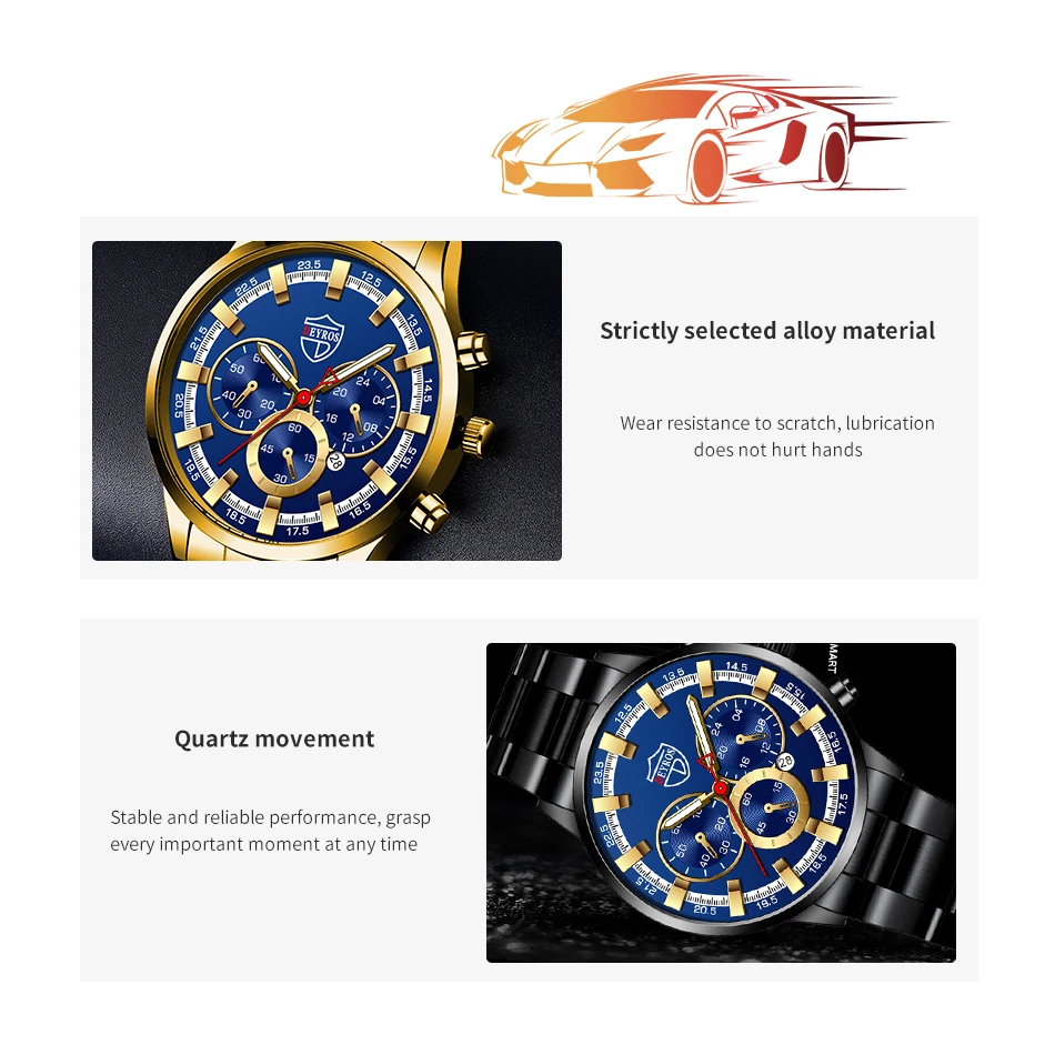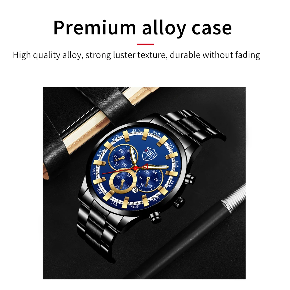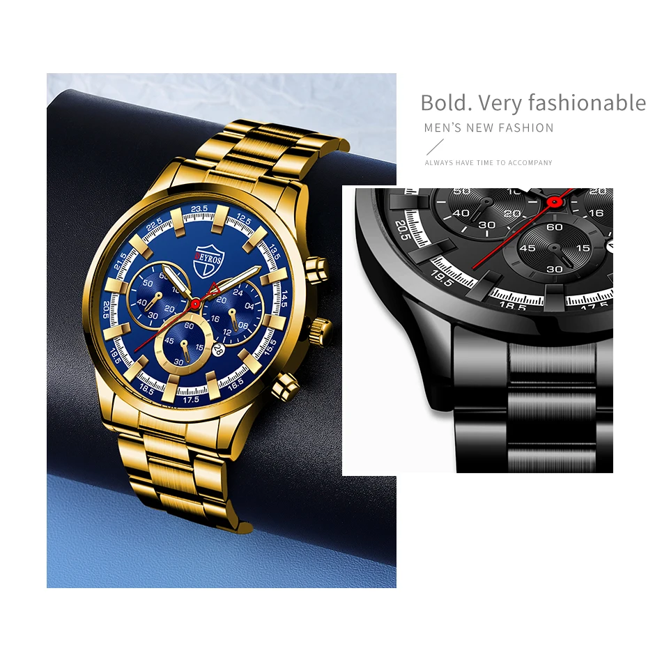 Montre de sport en cuir pour homme, accessoire de luxe, en acier inoxydable doré, à Quartz, décontracté, à la mode