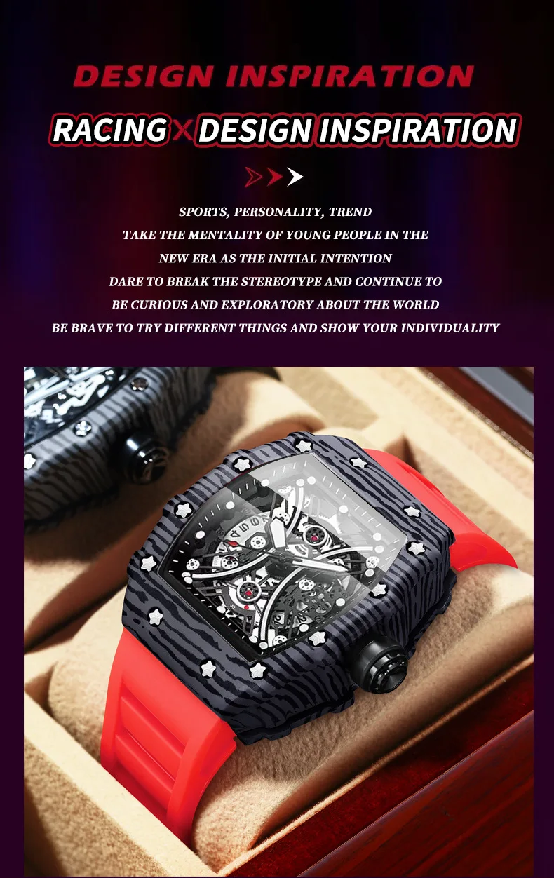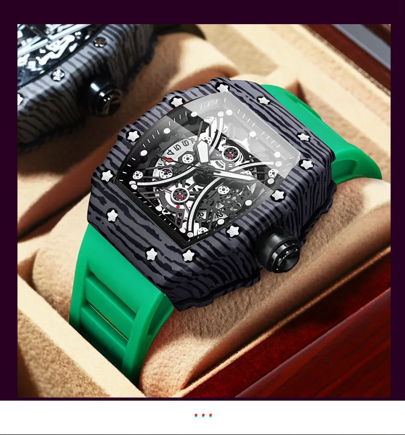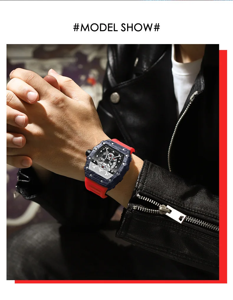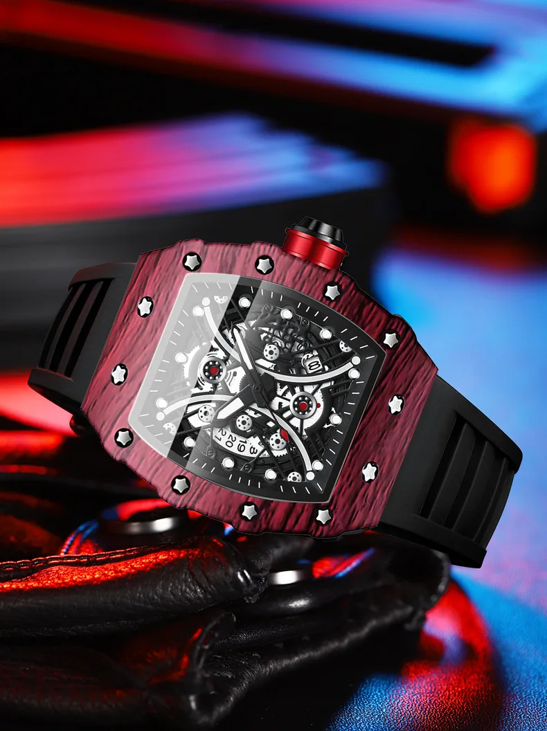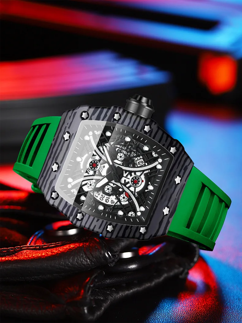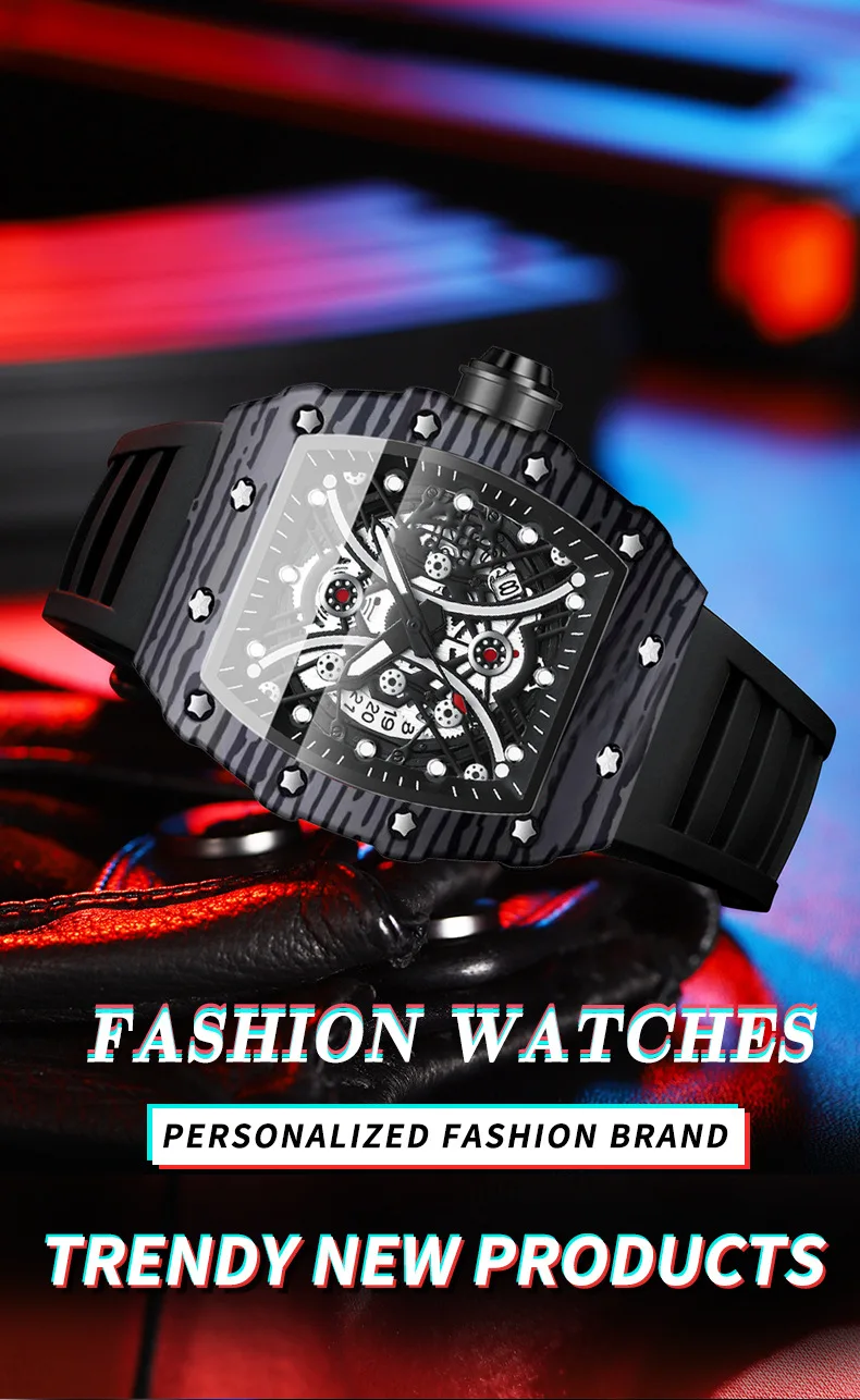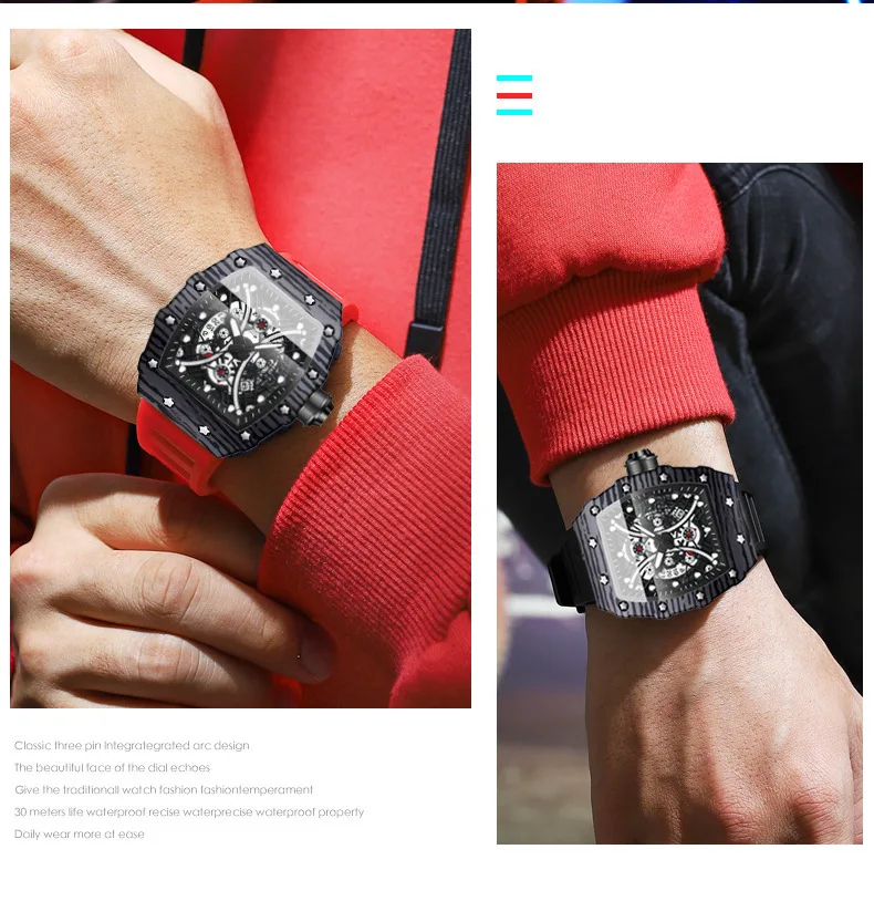 Montre pour homme Bracelet de montre en silicone Montre Tonneau Rétro-éclairage Montre de sport tendance 3bar Montre de luxe étanche pour femme Reloj Hombre