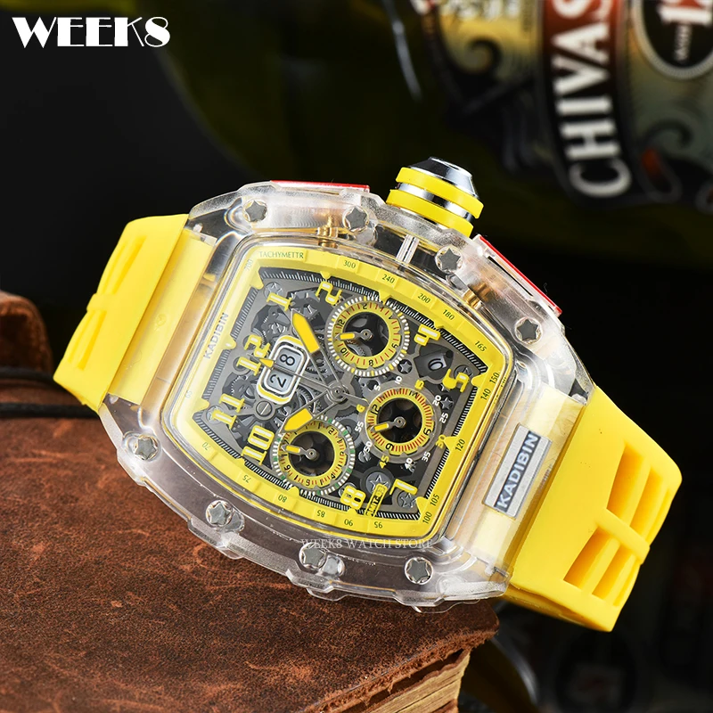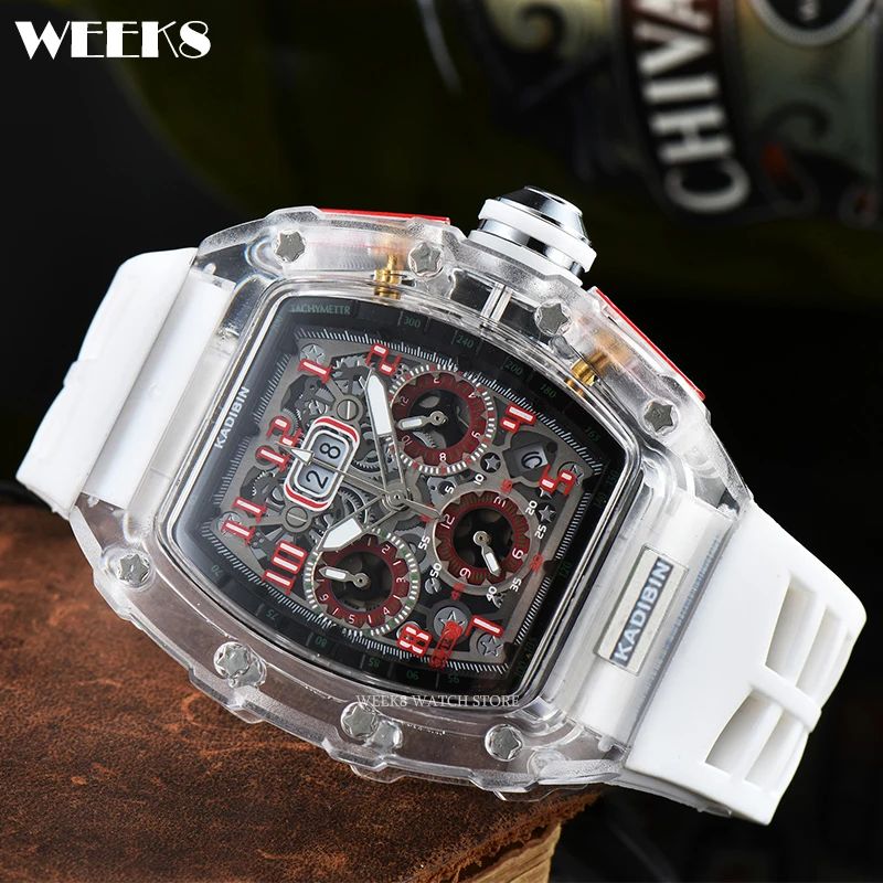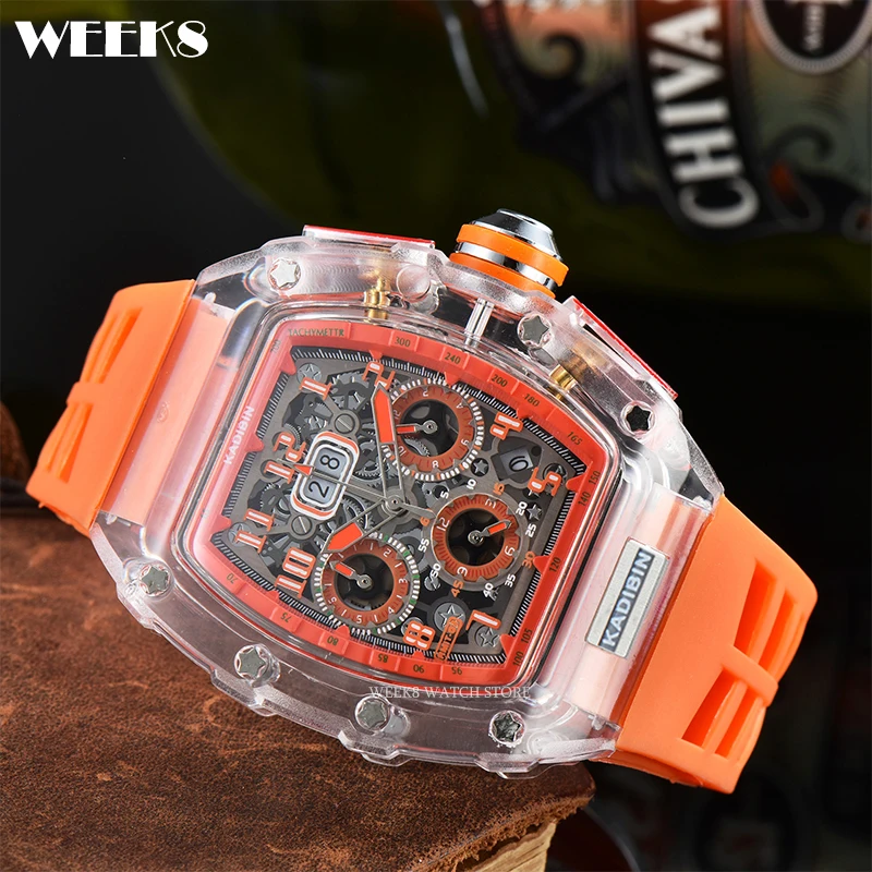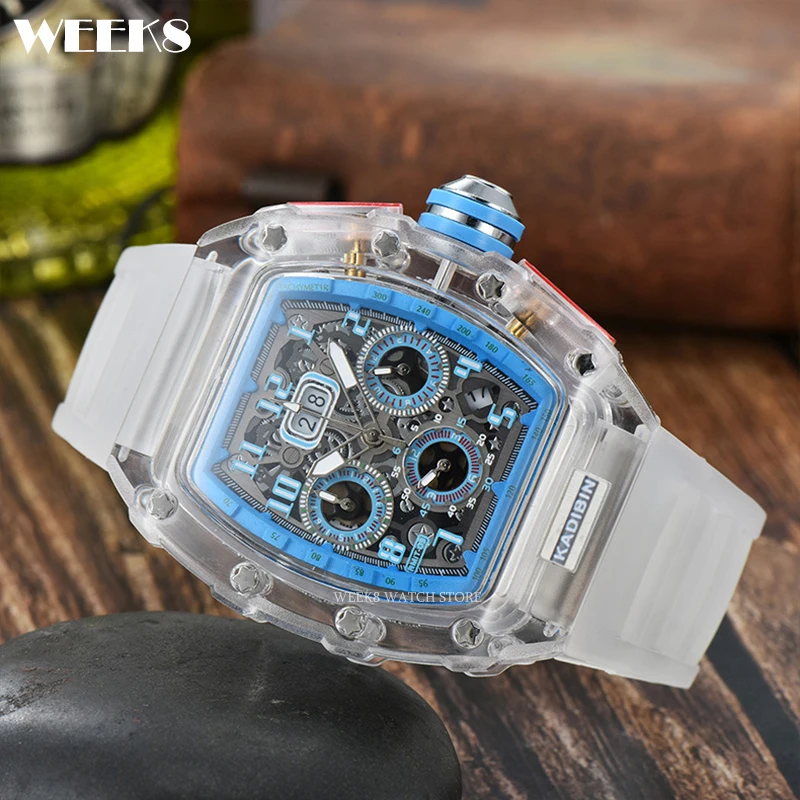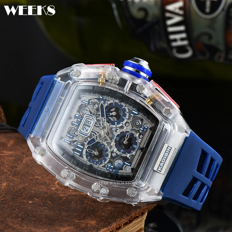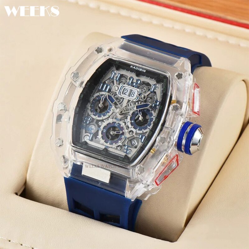 « TimeMaster Elite: Montre militaire de luxe pour hommes, Top bleu, boîtier Transparent, chronographe, Silicone, sport, Steampunk, horloge et Montres originales homme. »