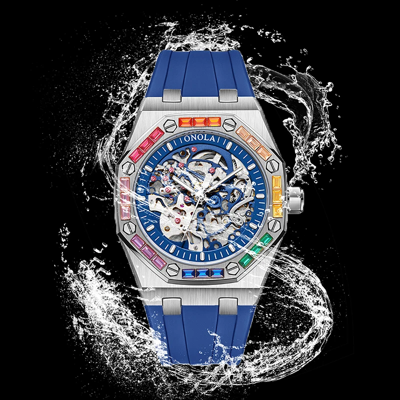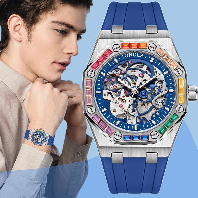 Montres mécaniques automatiques pour hommes avec sertissage de diamants Montre de luxe pour femmes Bracelet de montre en silicone étanche 3Bar Relogio Masculino
