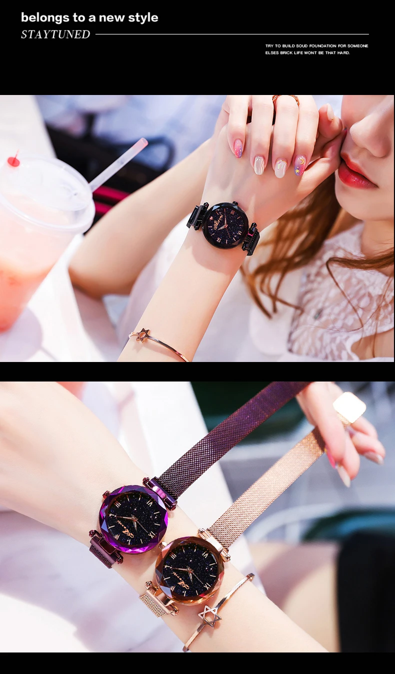 « Étoile Ciel: Montre Quartz Magnétique pour Femme »