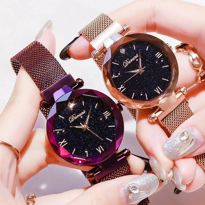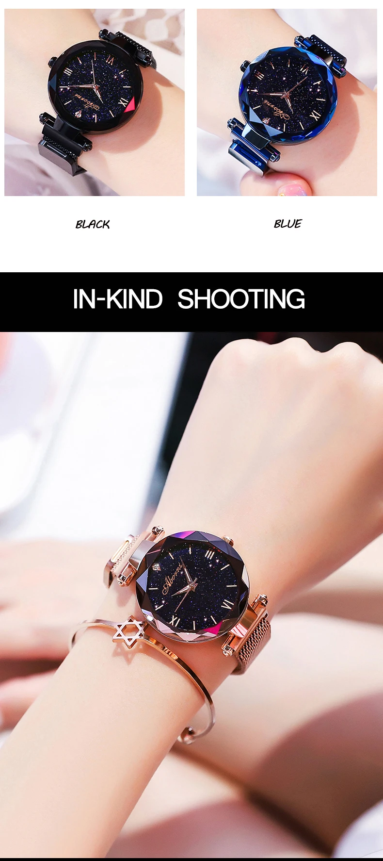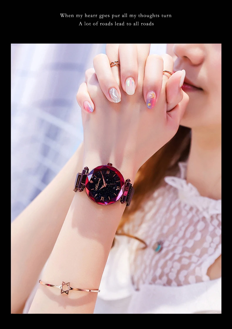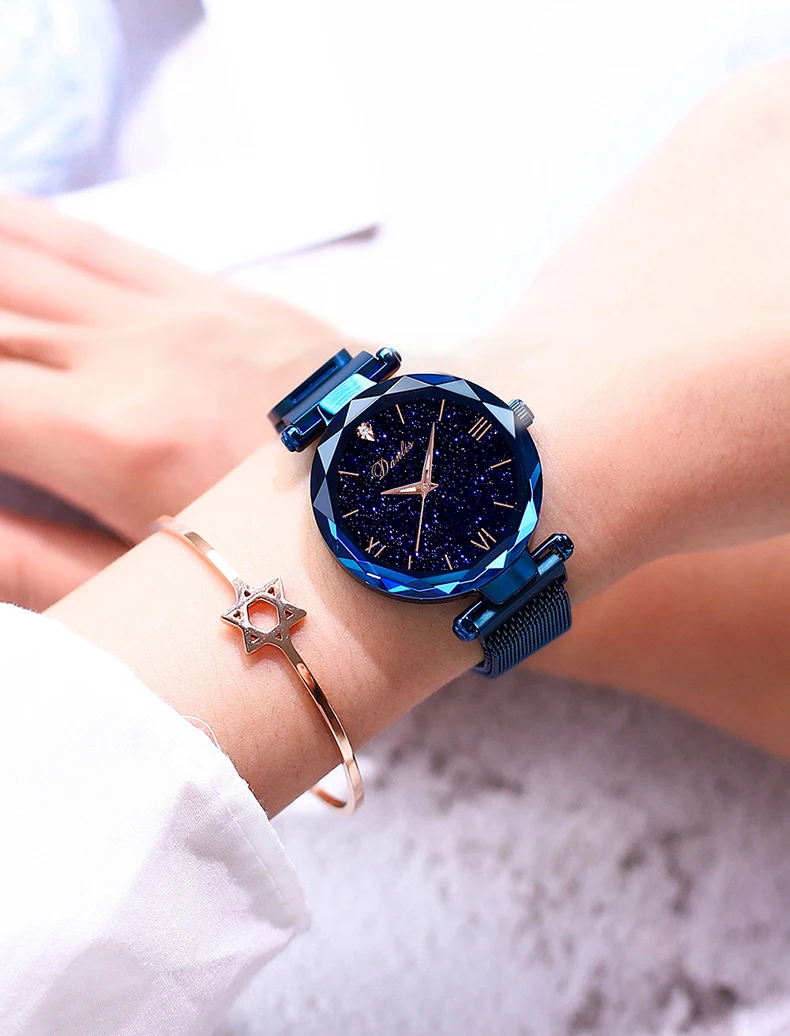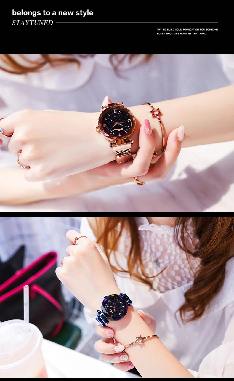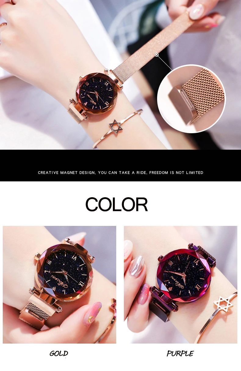 Nouvelle montre à la mode pour femmes, montre-bracelet élégante à Quartz magnétique pour femmes, boucle ciel étoilé, chiffres romains, cadeau, livraison directe