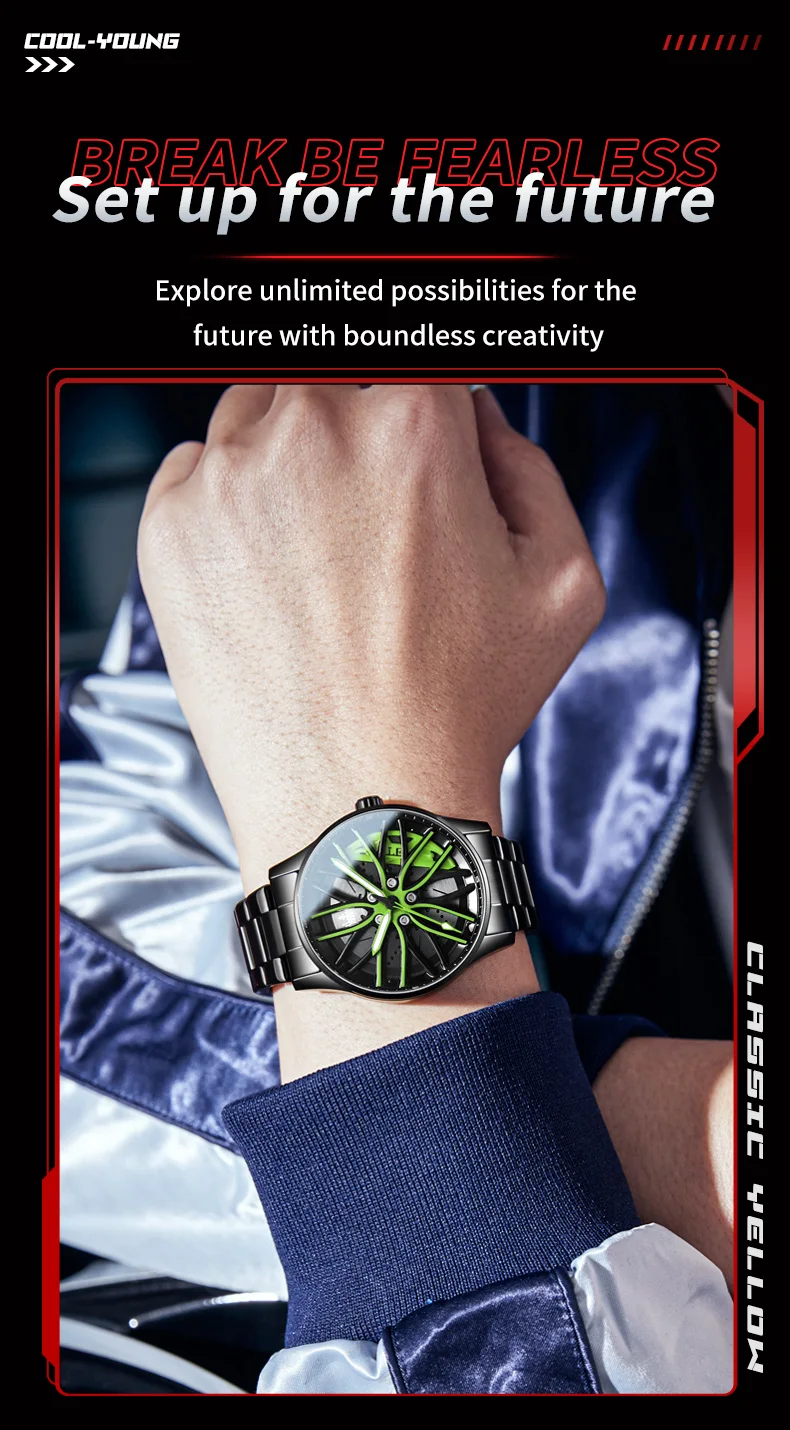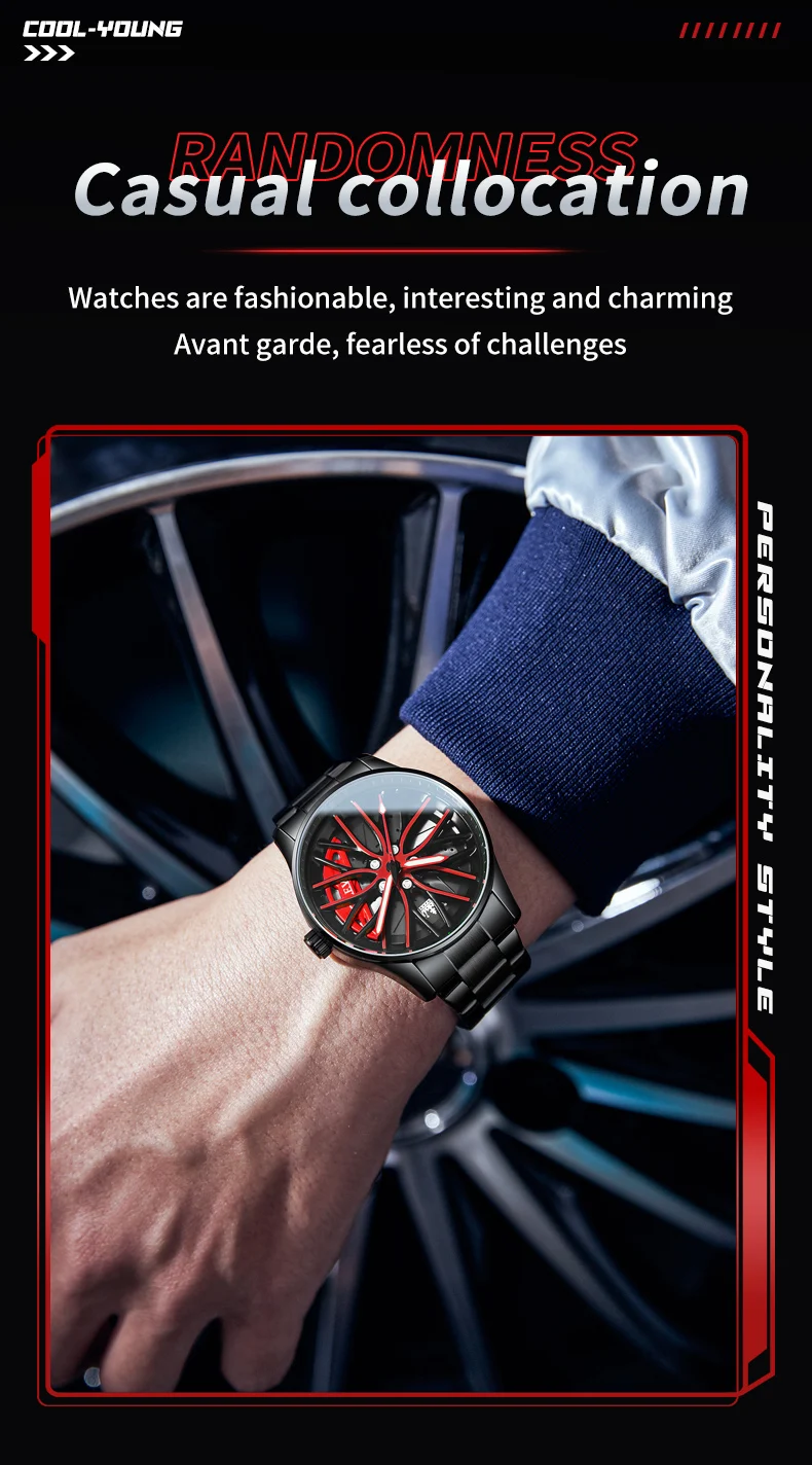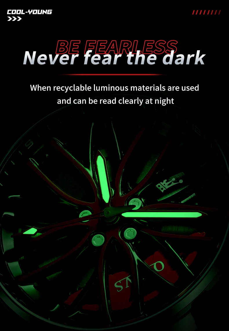 Montre à quartz en acier inoxydable lumineuse à cadran rotatif creux 3D pour hommes 9937 nouveauté