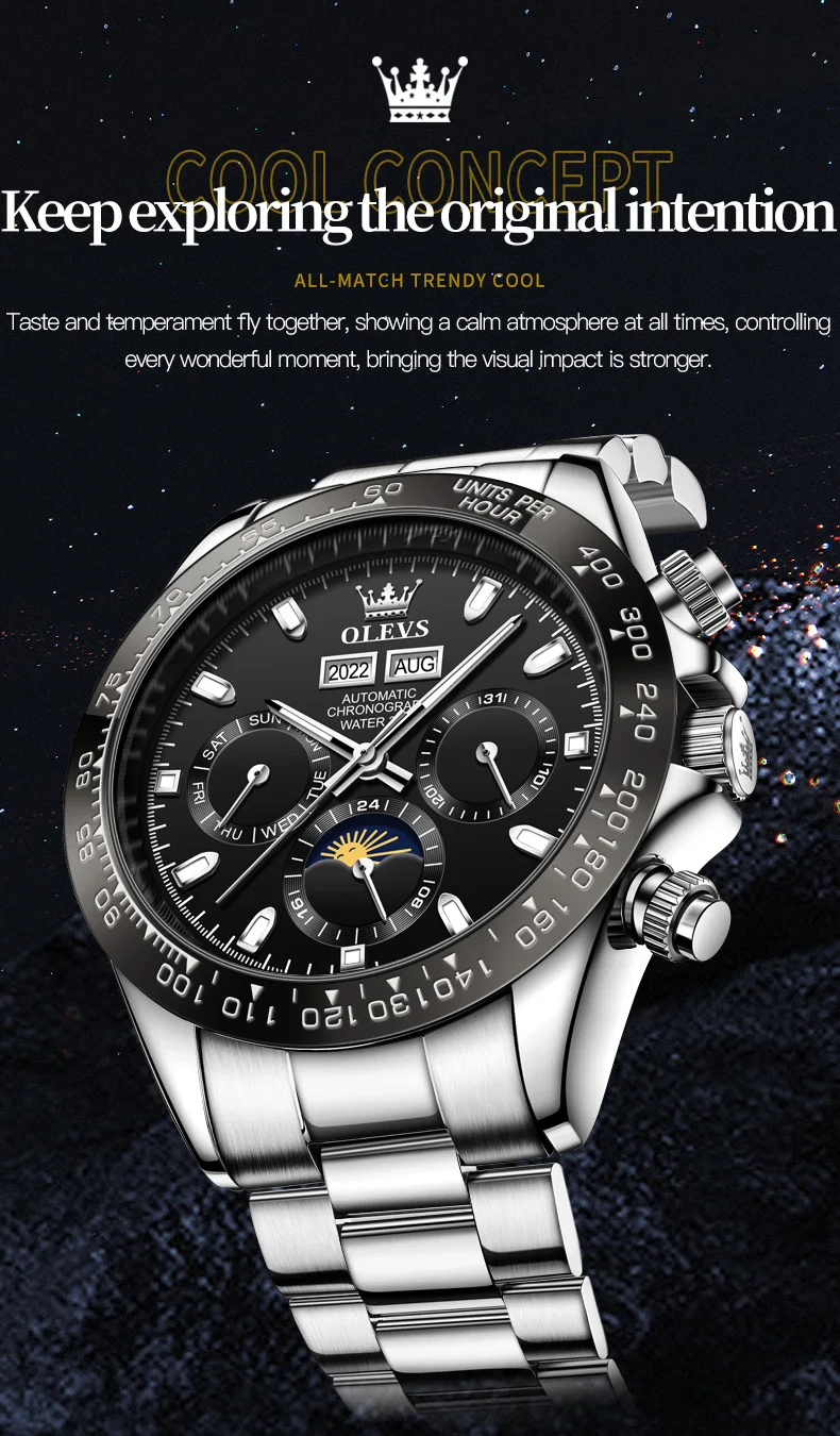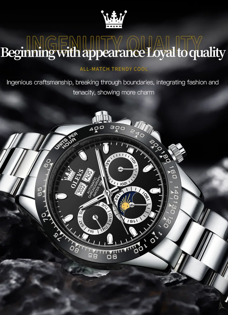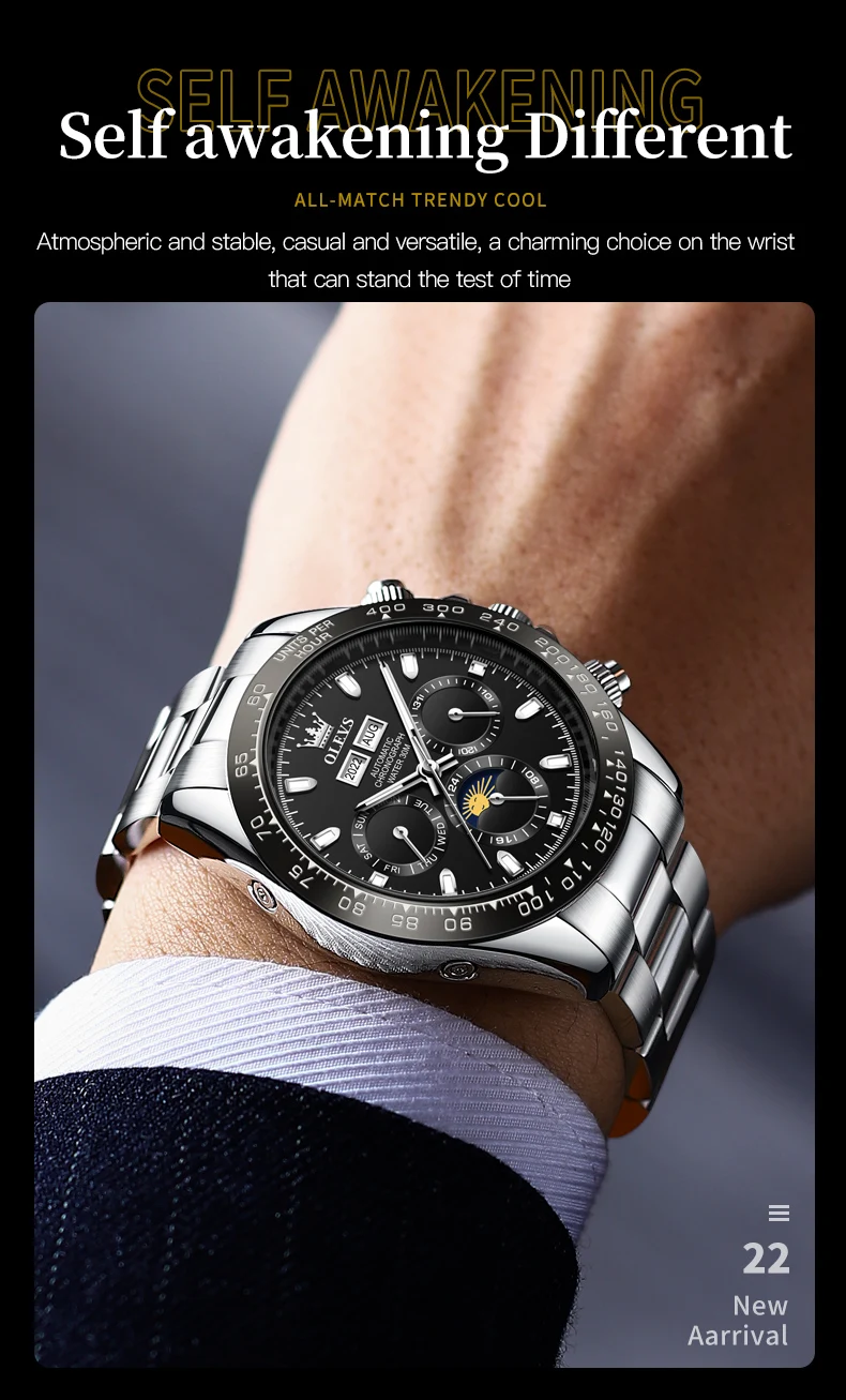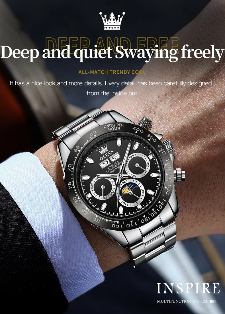 « OLEVS: Une Splendeur Automatique pour les Hommes » ou « L’Éclat d’OLEVS: Montres Automatiques pour Hommes ». Nom du produit: Automaton OLEVS.