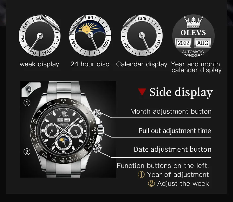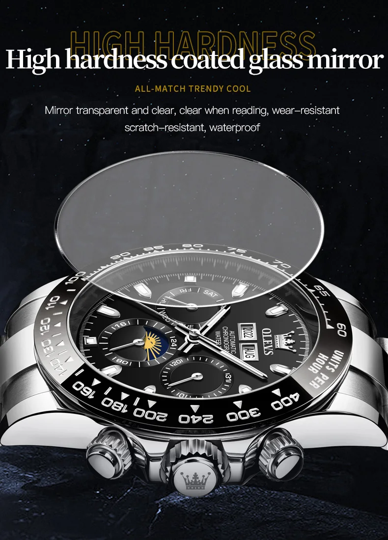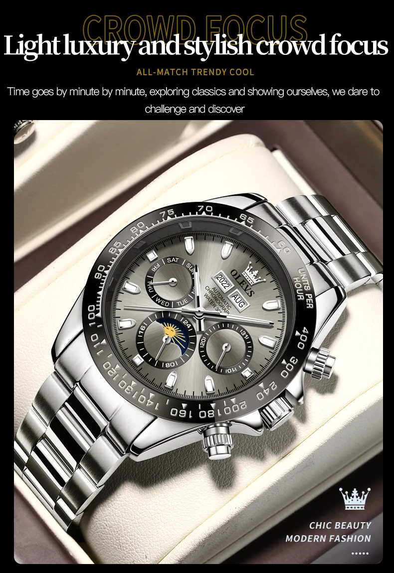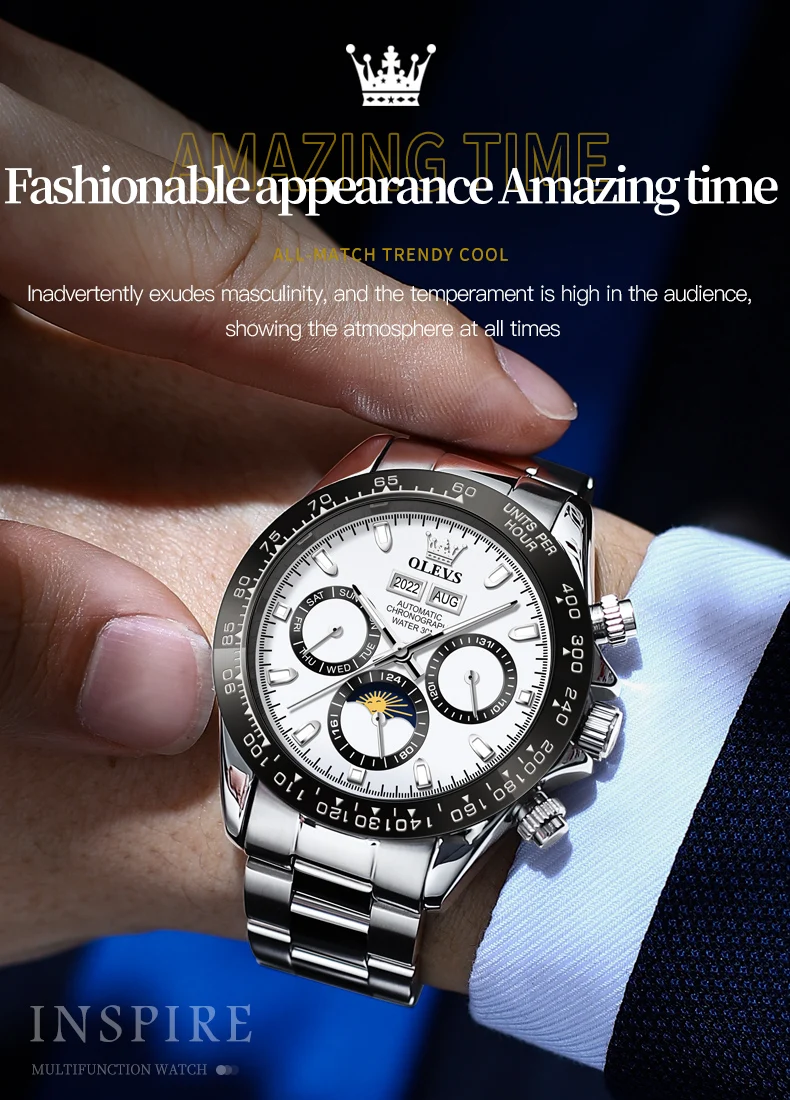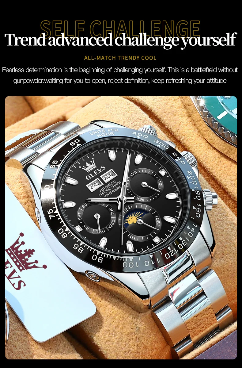 « OLEVS: Une Splendeur Automatique pour les Hommes » ou « L’Éclat d’OLEVS: Montres Automatiques pour Hommes ». Nom du produit: Automaton OLEVS.
