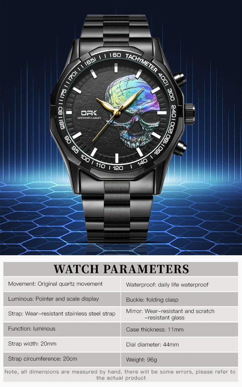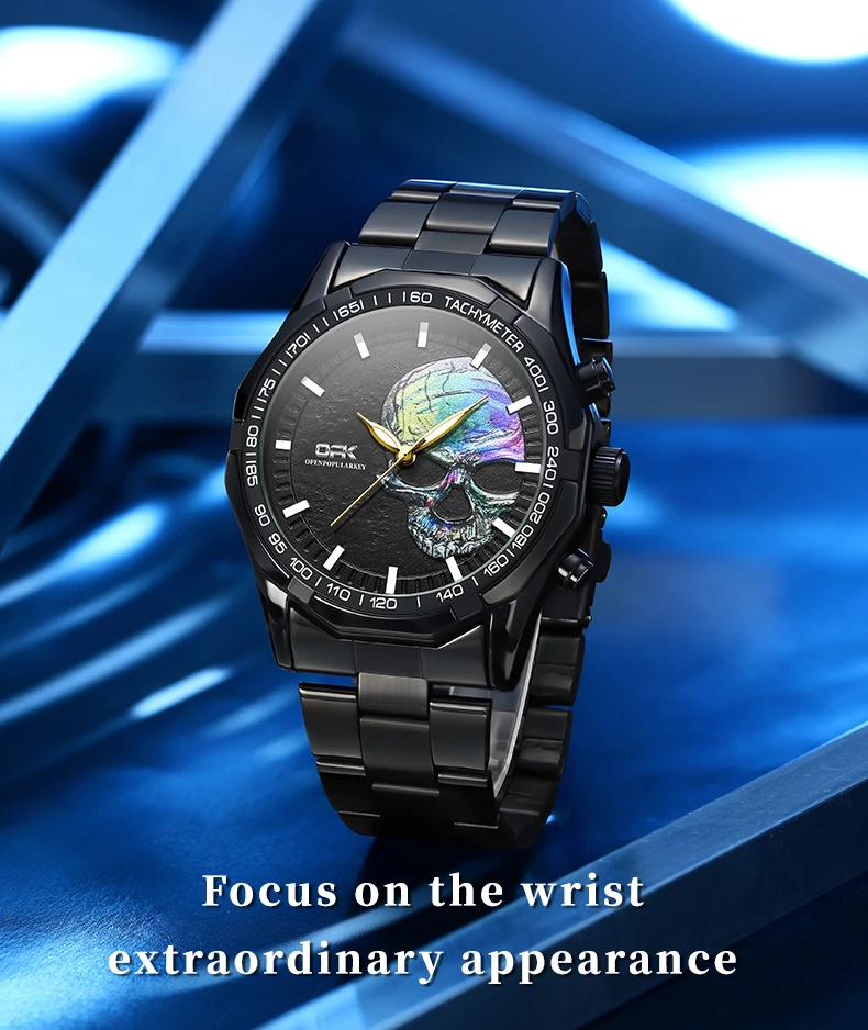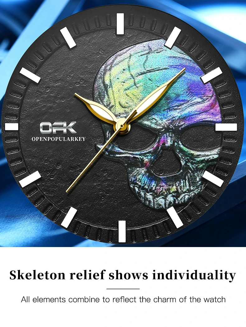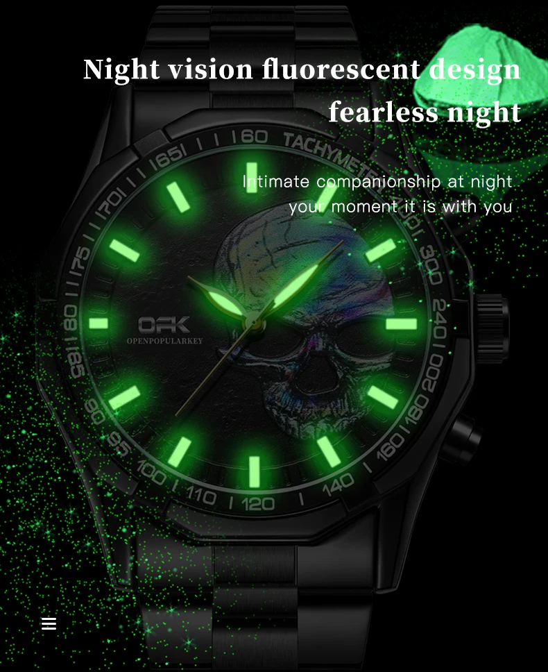 Alors regardez plus loin que la montre OPK-Montre à Quartz en Acier Inoxydable pour Homme, Montre Personnalisée, Glow Nocturne, Crâne Gaufré, Mode Classique, Original, Nouveau. Cette montre skull pour homme est l’accessoire parfait pour ceux qui cherchent à se démarquer et à porter une montre unique qui reflète leur personnalité ! 🤩