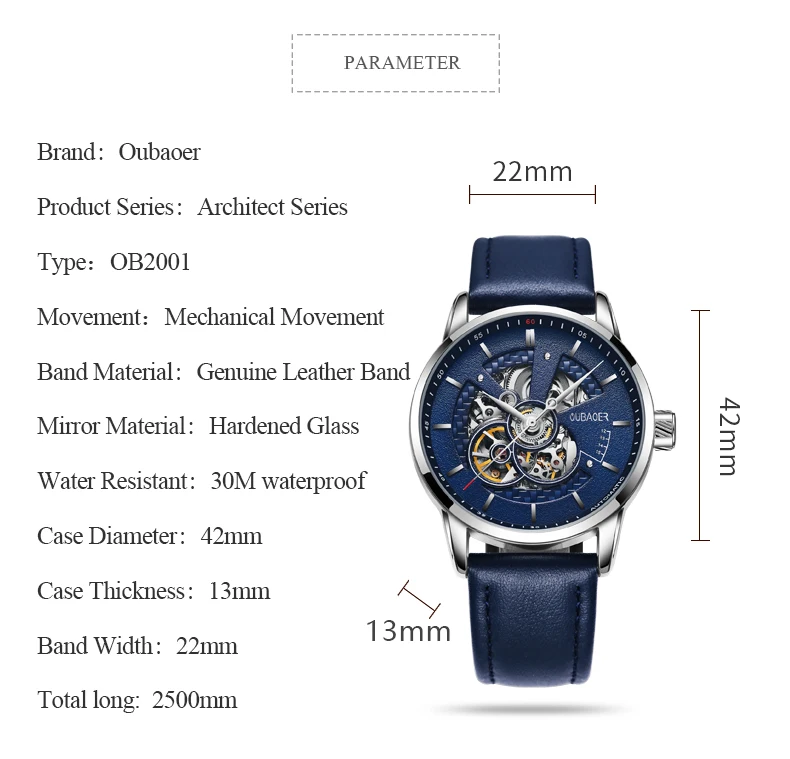 OUBAOER – montre mécanique automatique originale de 100%, de haute qualité, résistante aux chocs.