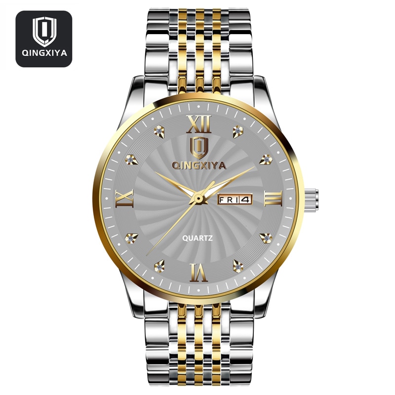 QINGXIYA – montre-bracelet à Quartz pour hommes, marque de luxe, cadran gris, étanche, lumineuse, semaine, Date, horloge, Sport