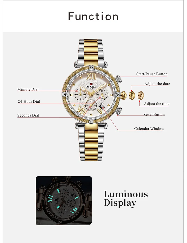 Cette montre de luxe pour femmes est un choix parfait pour celles qui cherchent une montre sophistiquée et fonctionnelle, qui peut être portée en toutes occasions. Avec son design élégant et sa fonctionnalité de pointe, cette montre est sûre de faire une impression durable.