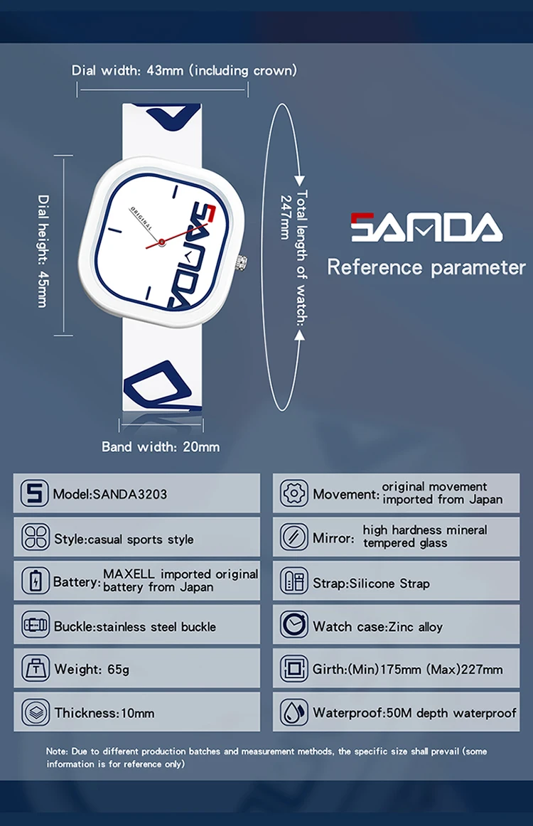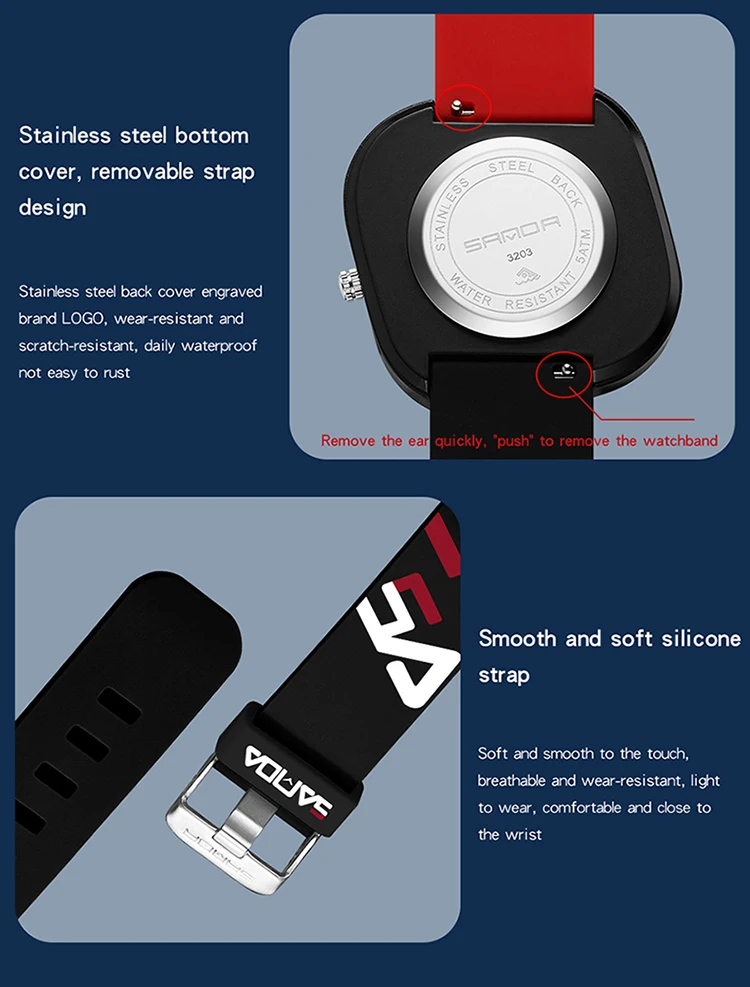 La Montre à Quartz de Sport Sanda est le moyen parfait pour compléter ton look et te sentir à l’aise toute la journée. Son design intemporel et sa finition en silicone sont parfaits pour tous les styles. Elle est étanche et facile à nettoyer, ce qui la rend parfaite pour toutes les occasions. Avec cette montre, tu seras toujours à la mode et confortable !