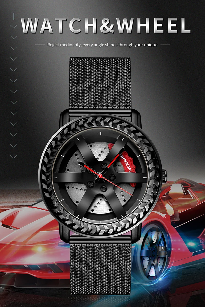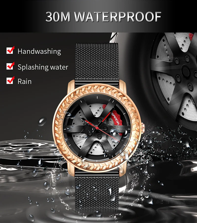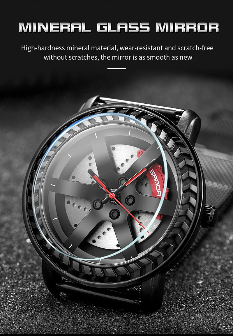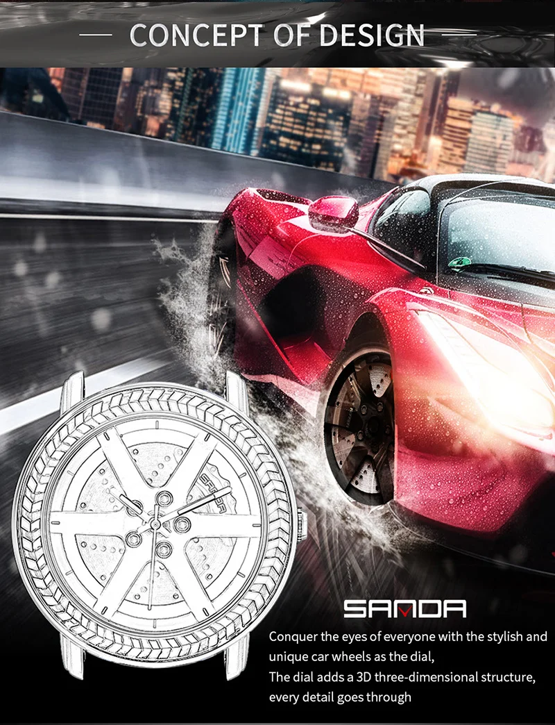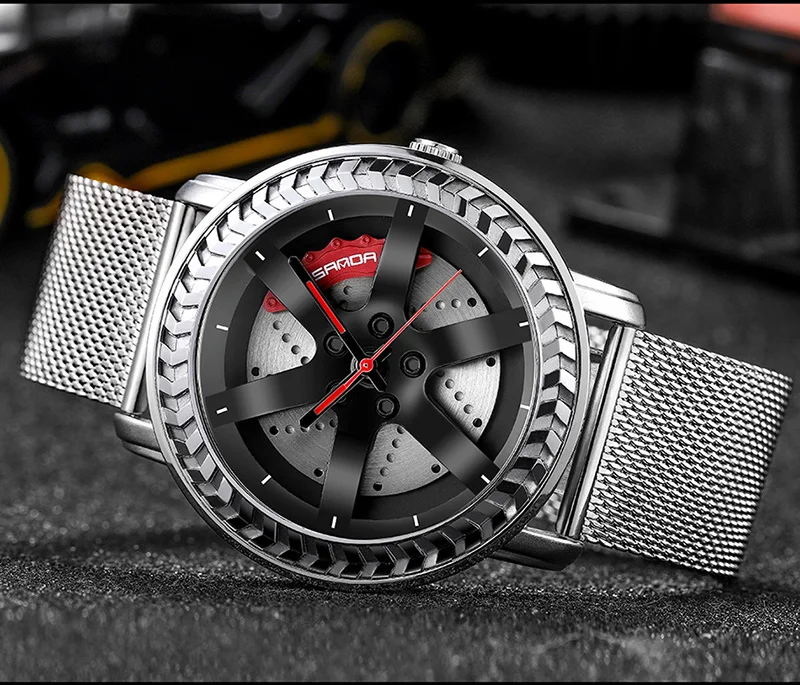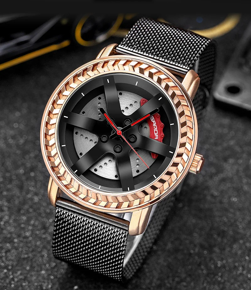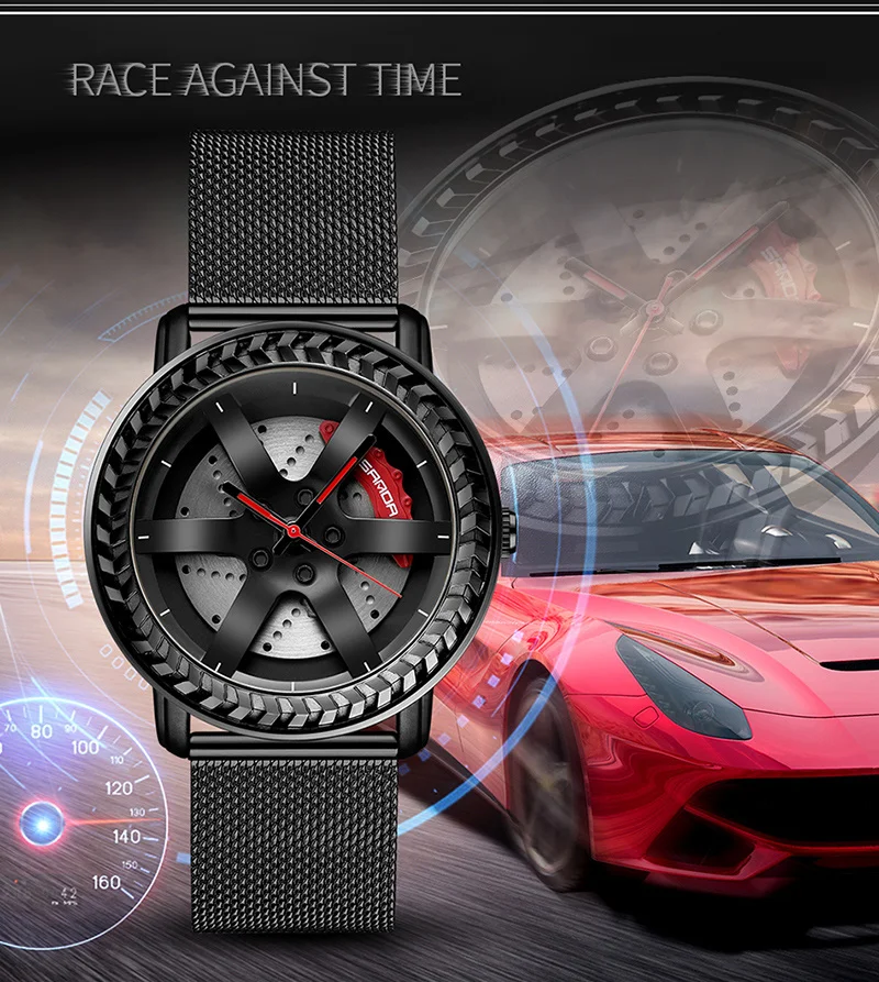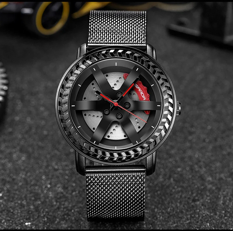 SANDA P1050 2023 étanche bracelet en acier inoxydable placage sous vide voiture roue jante moyeu Sport lumineux montre-bracelet hommes montre Reloj Hombre