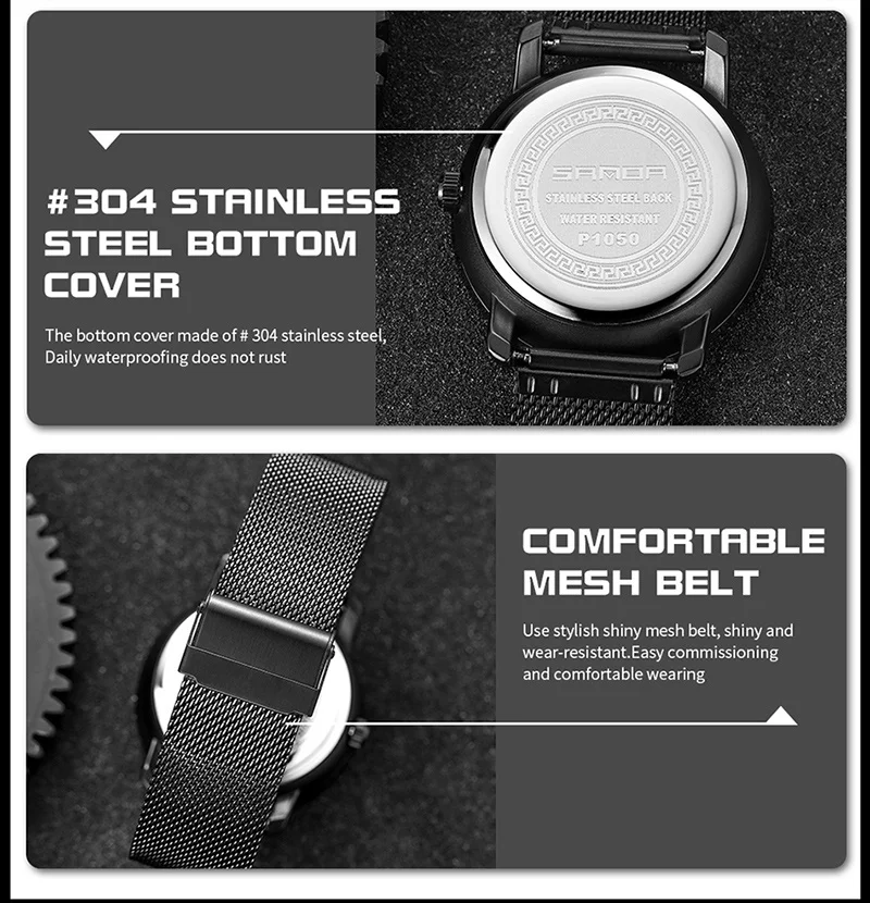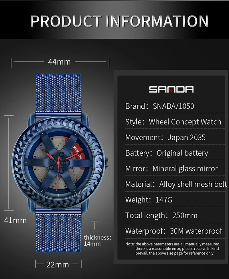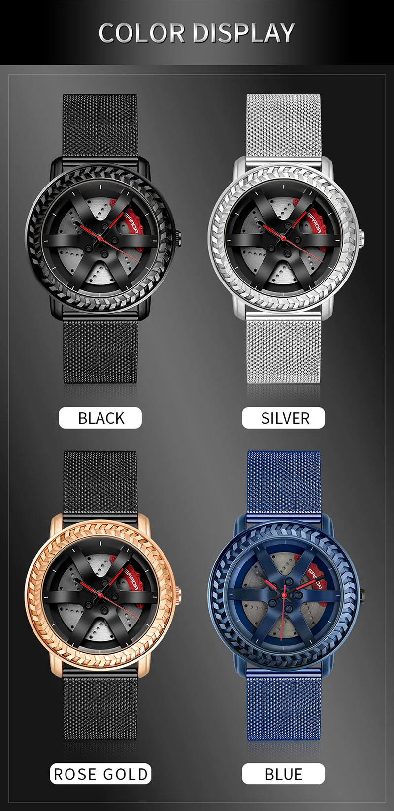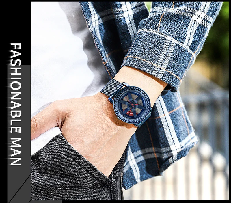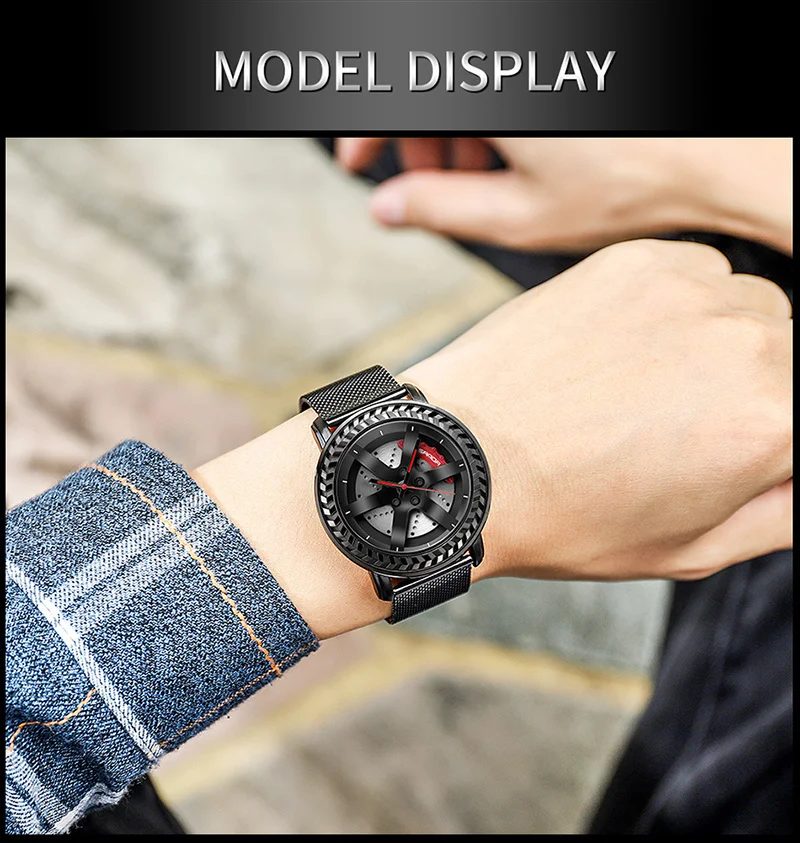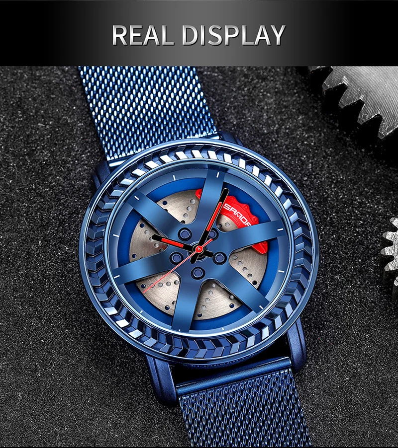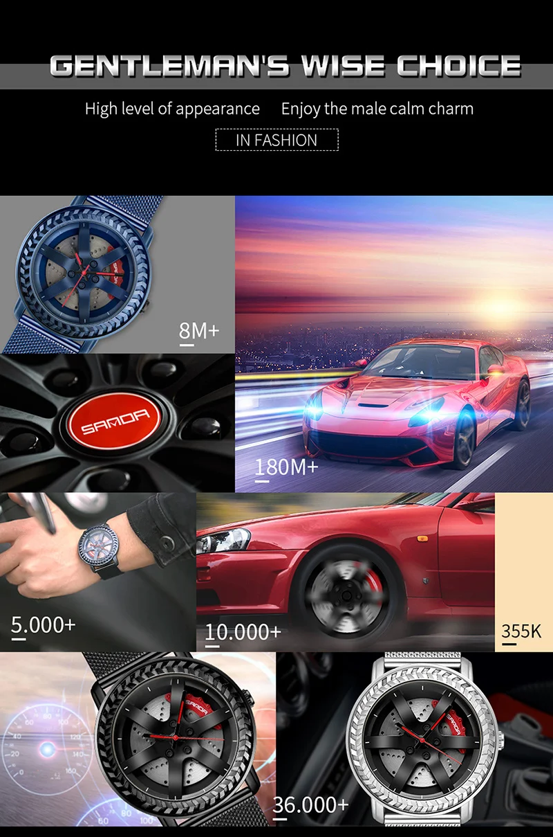 SANDA P1050 2023 étanche bracelet en acier inoxydable placage sous vide voiture roue jante moyeu Sport lumineux montre-bracelet hommes montre Reloj Hombre