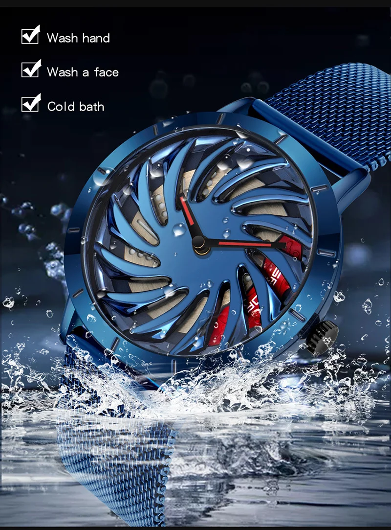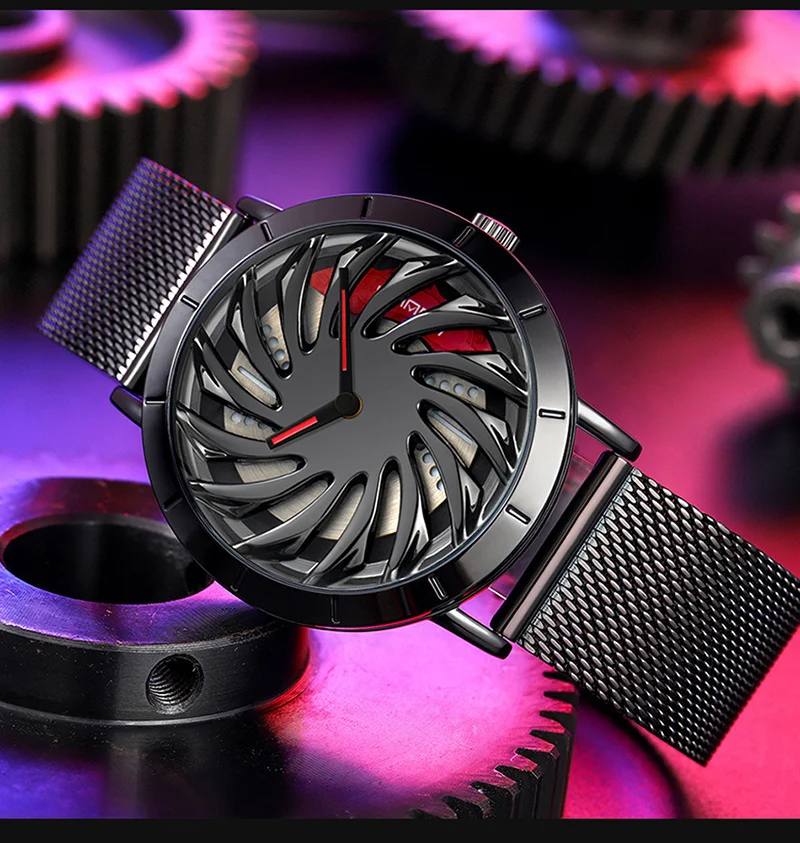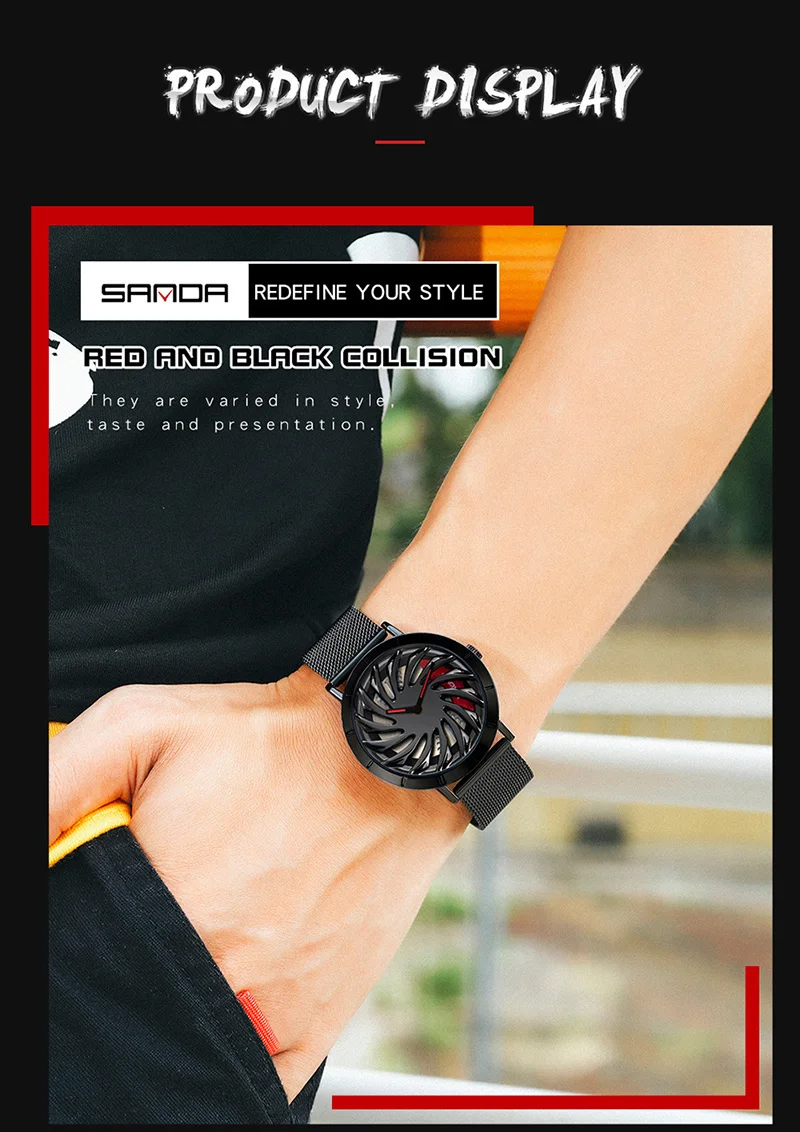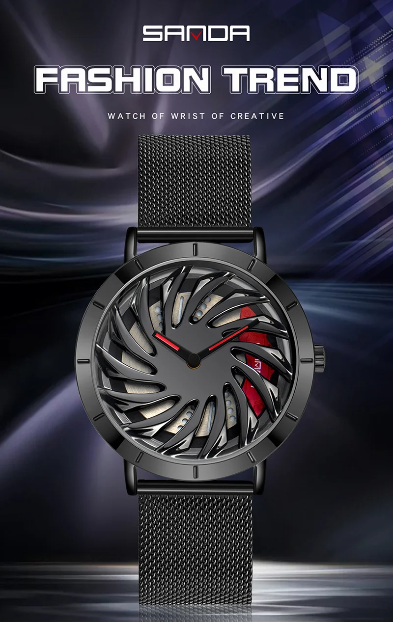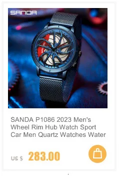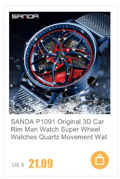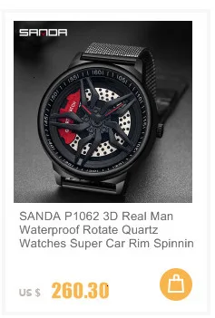 SANDA P1056 2023 nouveau Unique réel 3D modèle filature voiture moyeu de roue montre de luxe lumineux mouvement étanche Super jante montres pour hommes