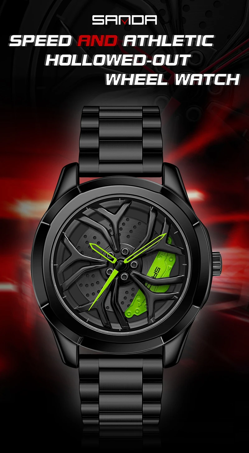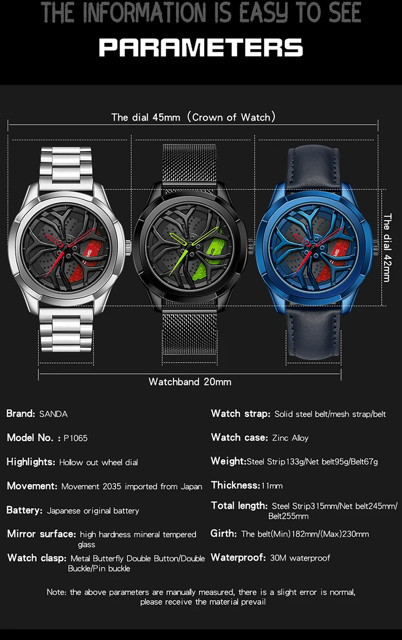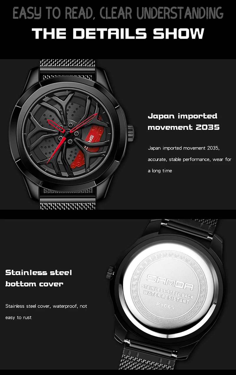 SANDA Sports – montre à Quartz pour hommes 2022, nouvelle mode, bracelet en acier inoxydable bleu, cadran d’étrier de voiture, montre étanche P1065