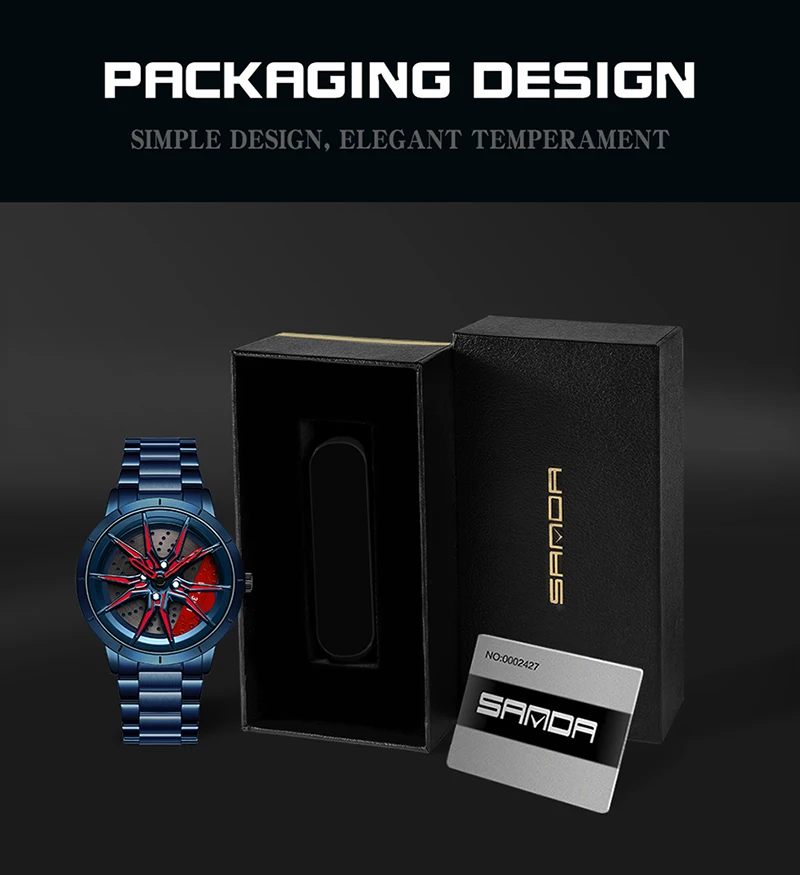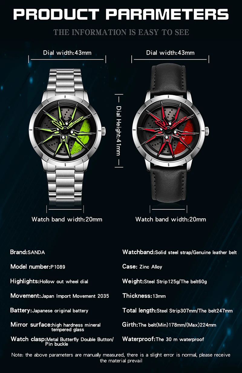 SANDA – montre étanche de marque pour hommes, moyeu de jante de voiture en acier inoxydable, pour GTR