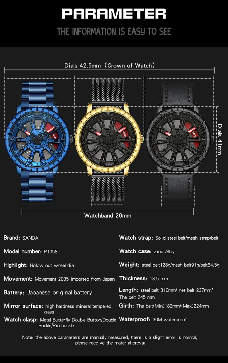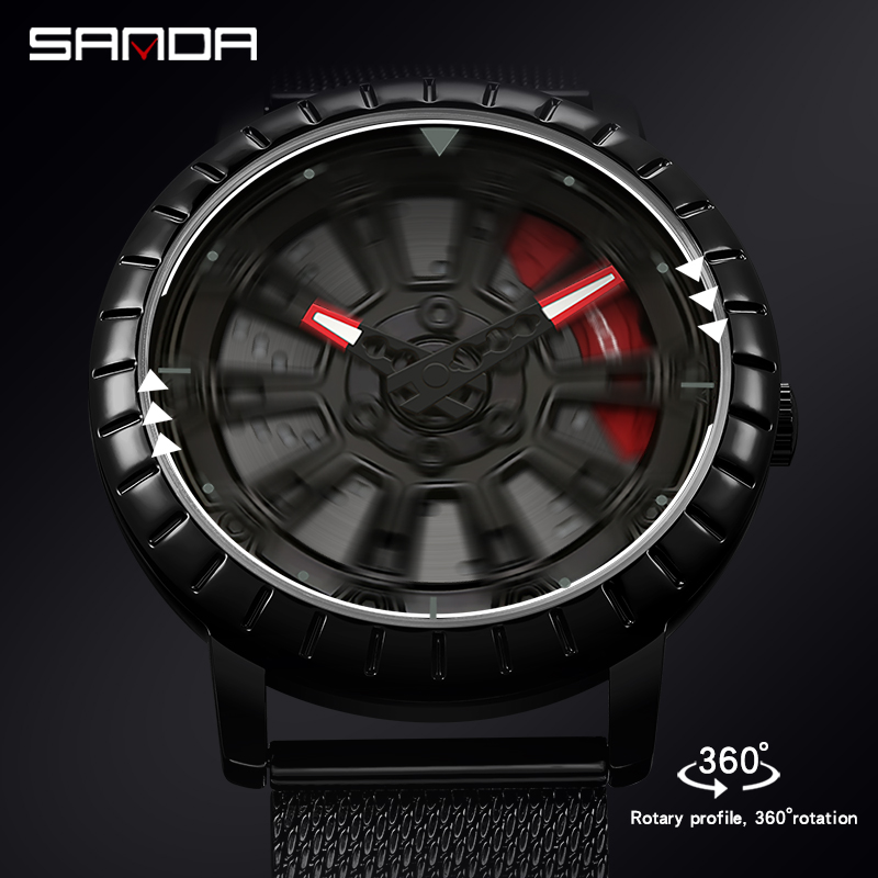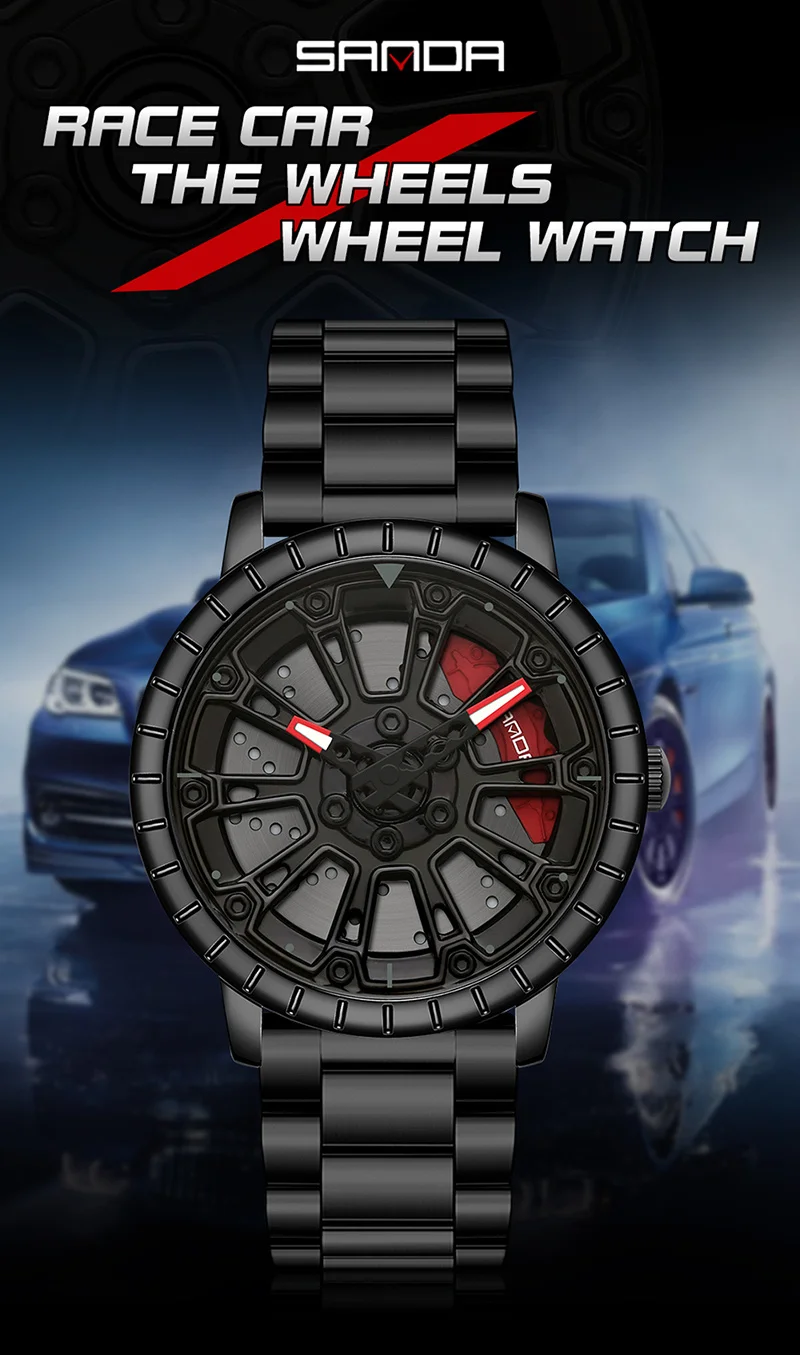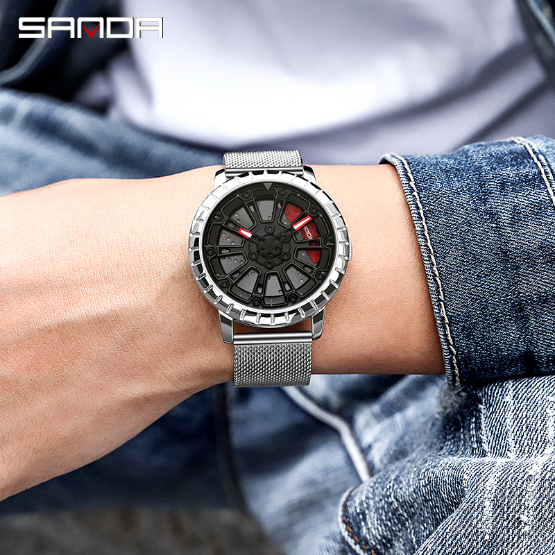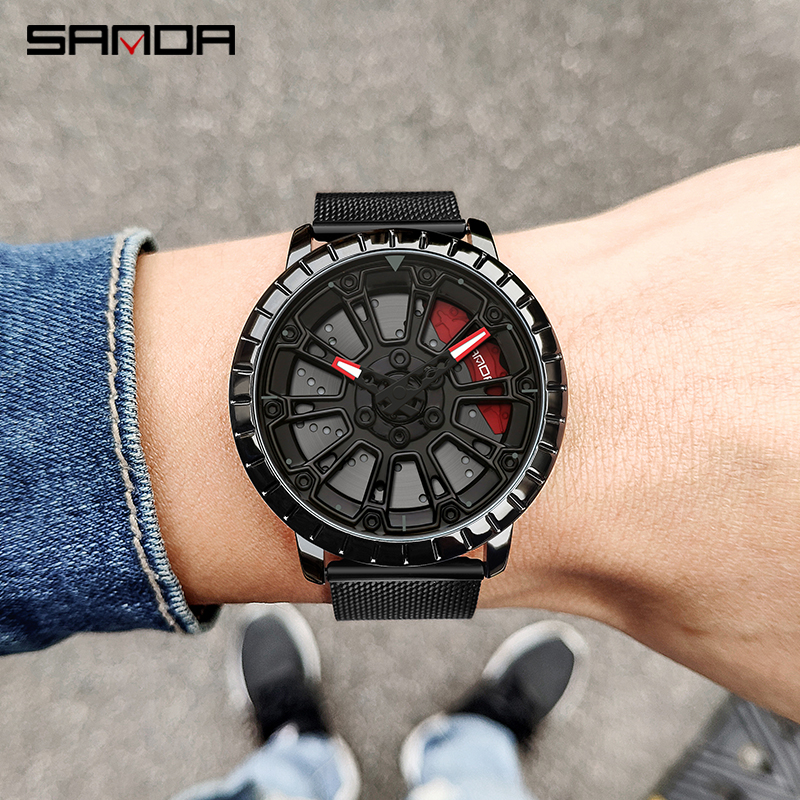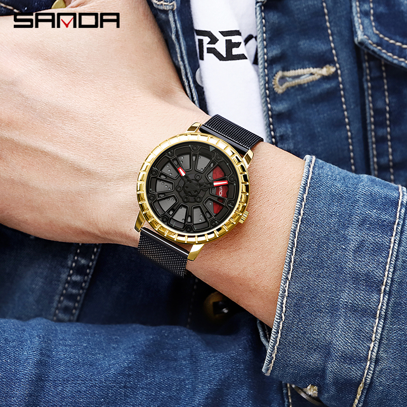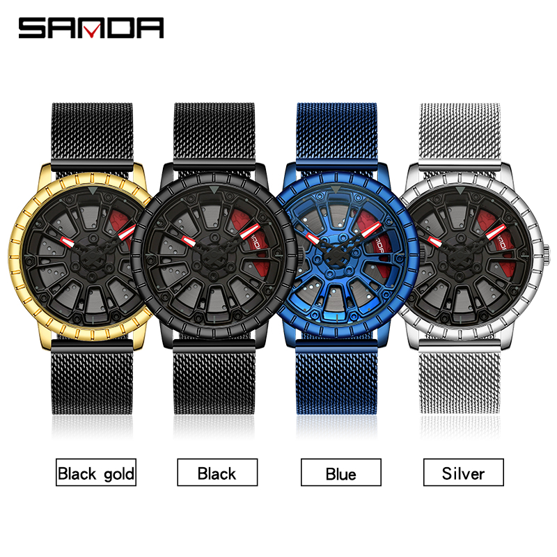 SANDA P1058 2023 nouveau Original roue jante moyeu montres hommes Super voiture Quartz montre-bracelet en acier inoxydable étanche montre pour homme