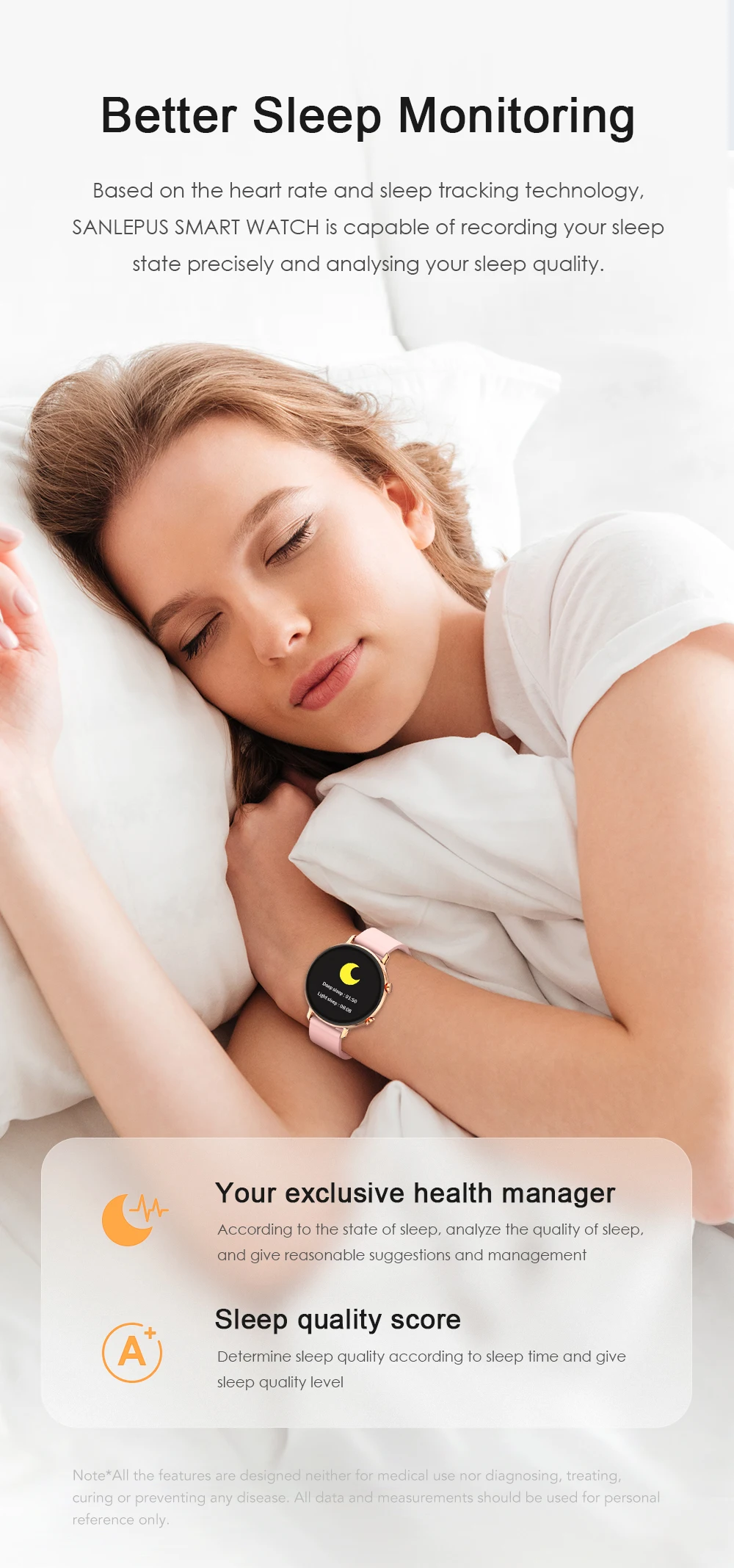 Basée sur la réitération cardiaque et la technologie de permanent du assoupissement, la montre pertinente SANLEPUS est toléré d’homologuer votre situation de assoupissement en tenant concision et d’critique de la fonction de votre assoupissement.