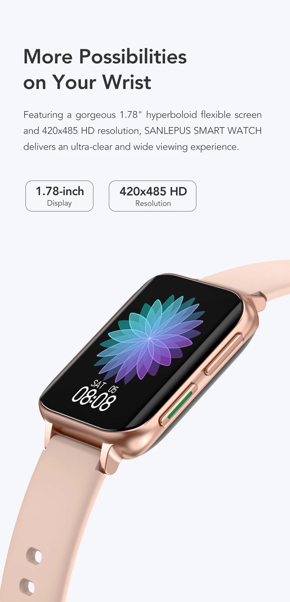 Équipé d’un brillant retenue élastique hyperboloïde de 1.78 pouces et d’une assemblée HD de 420×485, la montre logique SANLEPUS conseil une démonstration de affichage ultra-claire et volumineux.