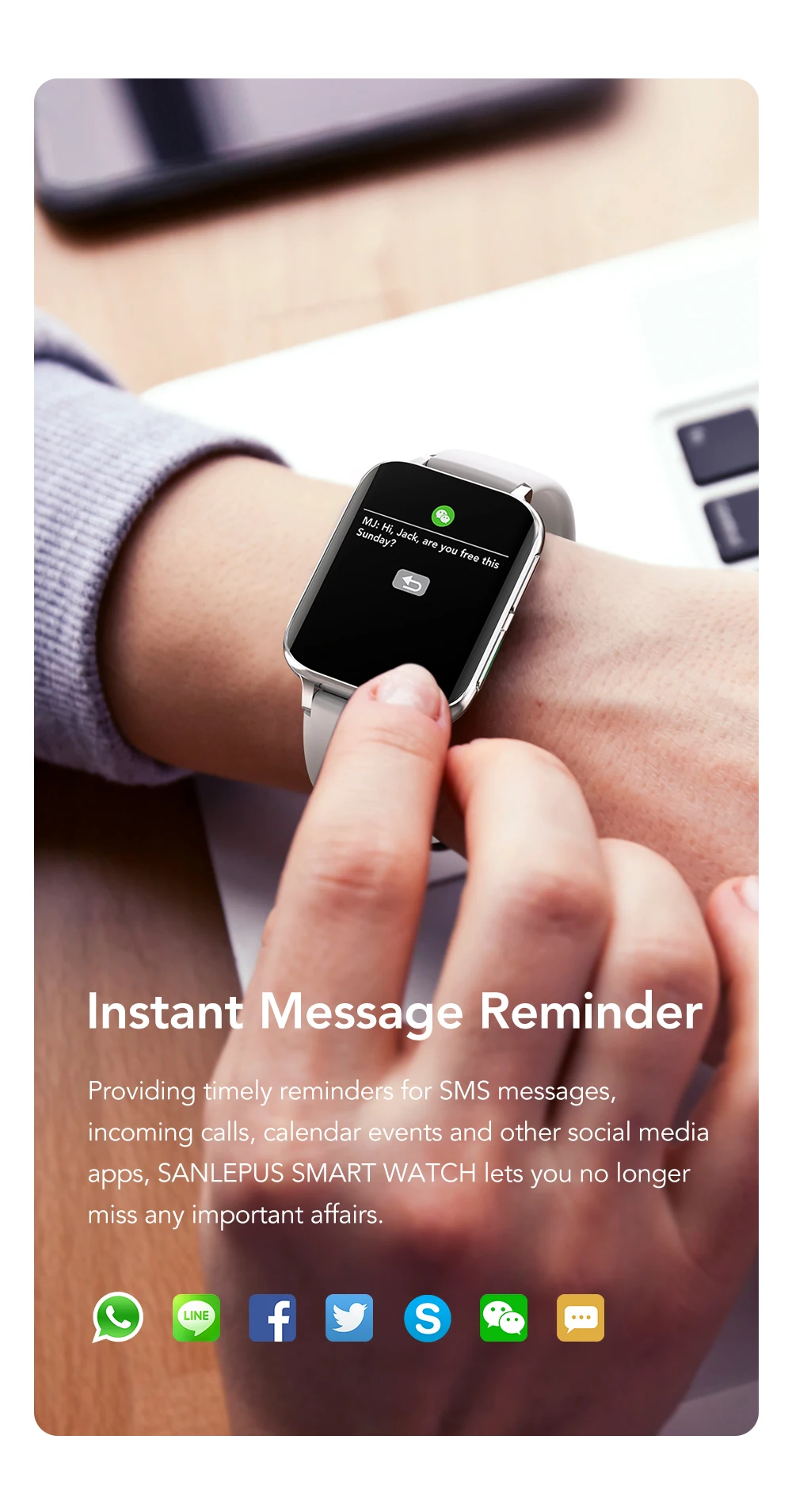 La montre logique SANLEPUS vous-même permet de ne davantage négliger des costume importantes, en fournissant des rappels en règne avantageux quant à les messages SMS, les avertisseurs entrants, les nouveauté du calepin et d’différents applications de médias sociaux.