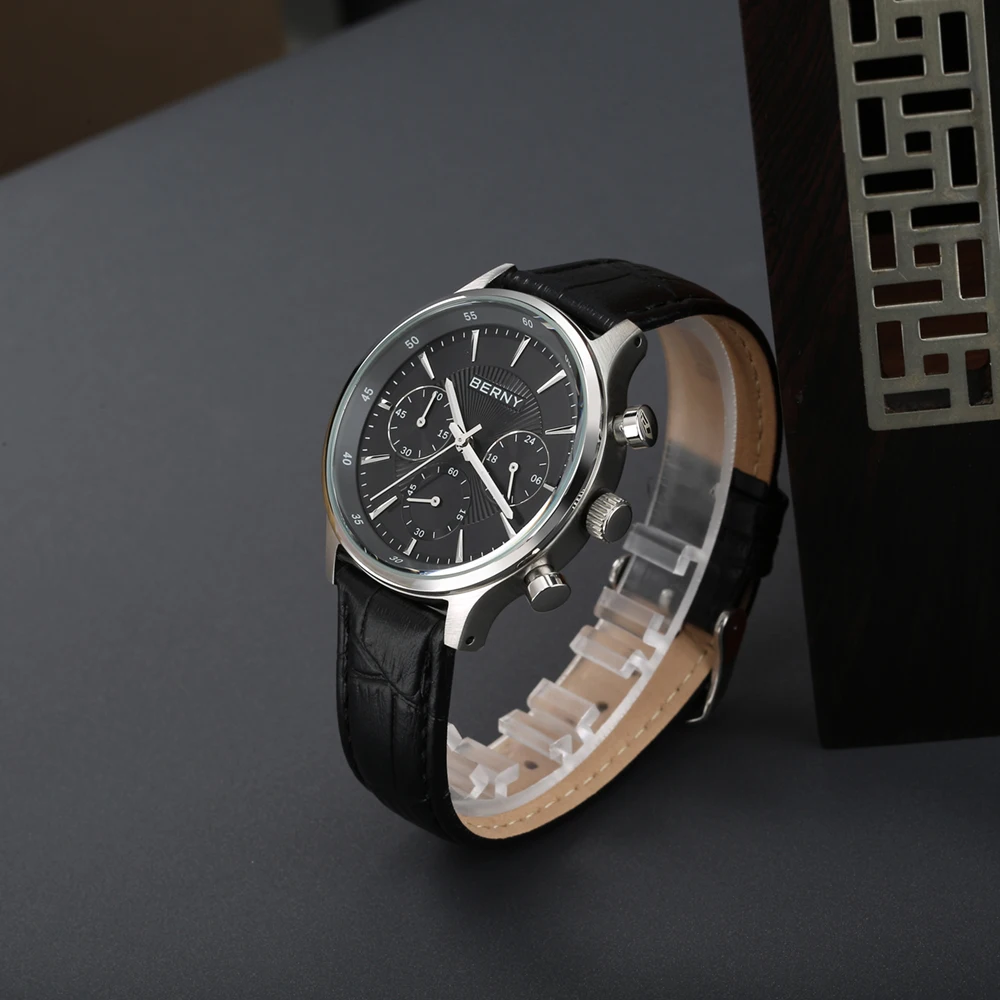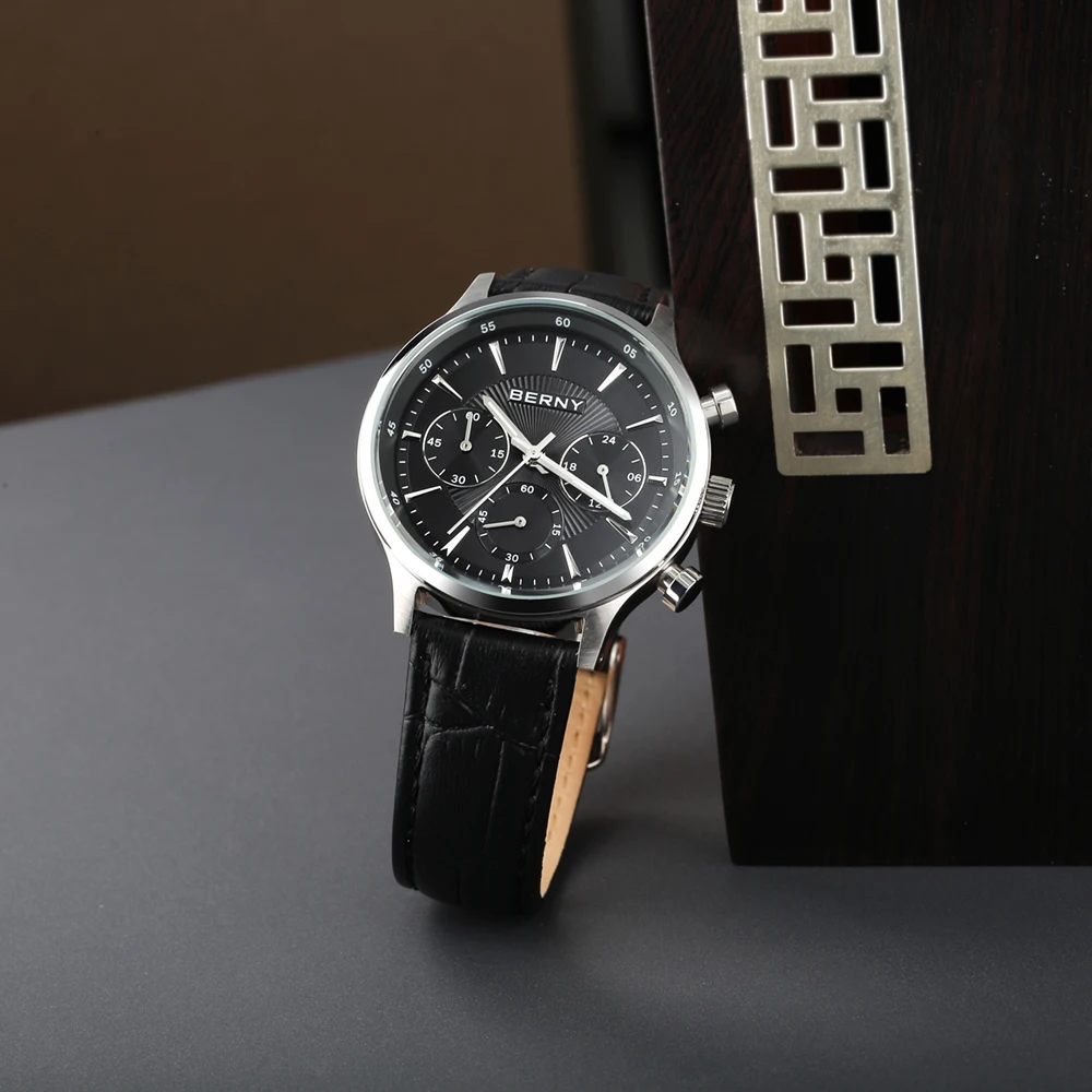 Caractéristiques: cadran chronographe 24H, mouvement à Quartz Vd54, Style formel professionnel, étanche 3ATM