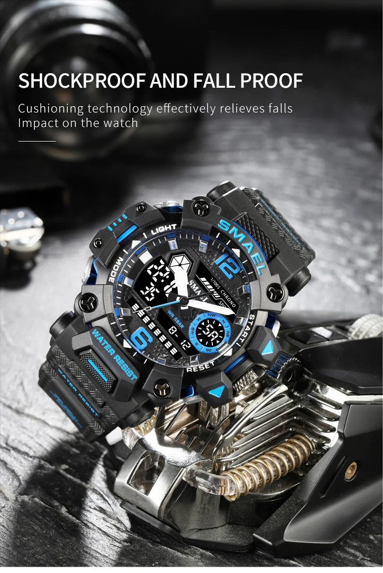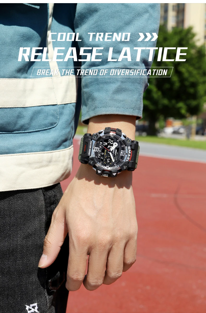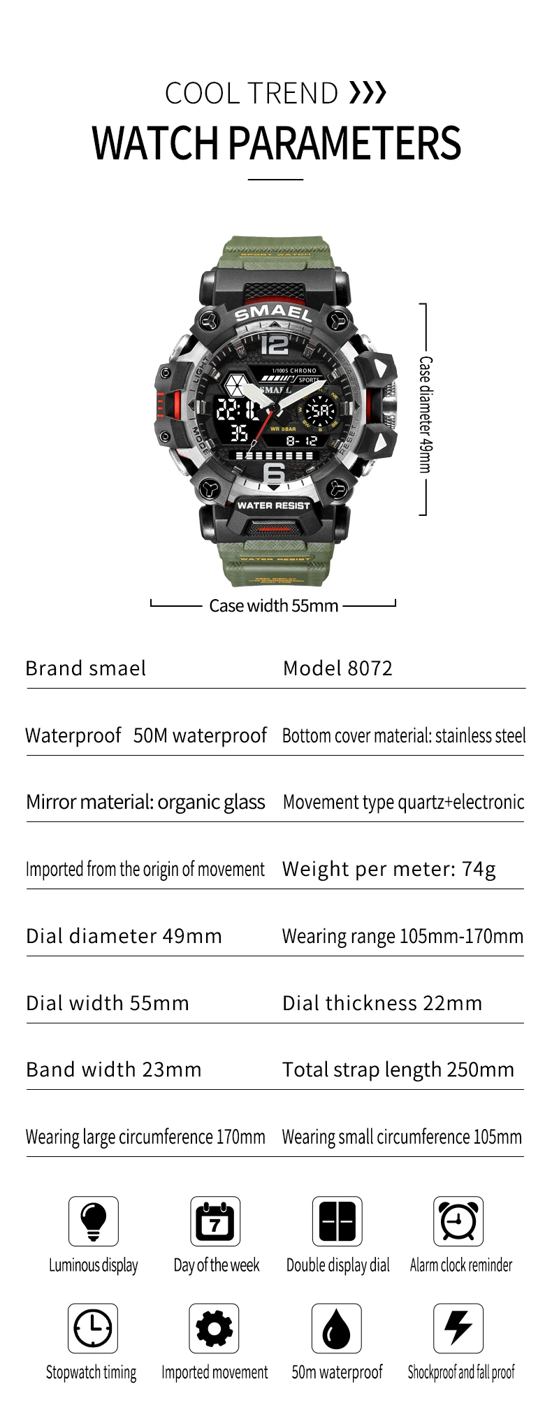 SMAEL montre de sport pour homme 50m étanche montre numérique LED résistant aux chocs 8072 montres militaires numérique armée montres hommes