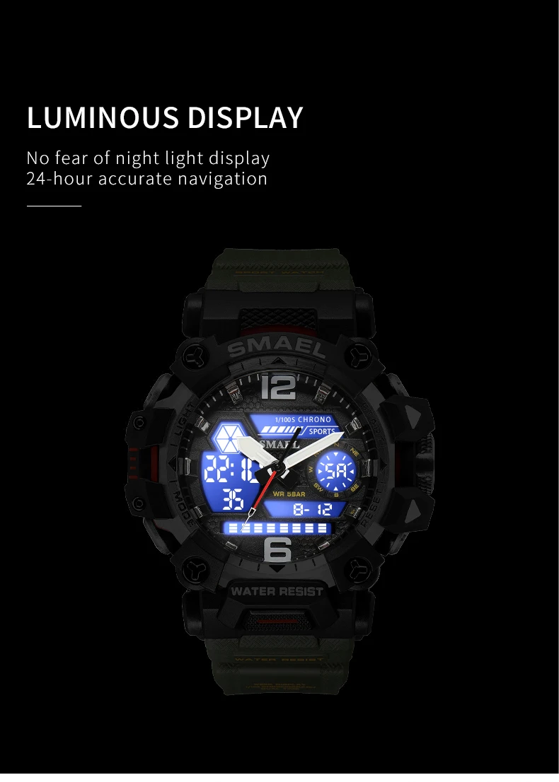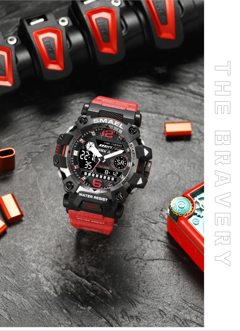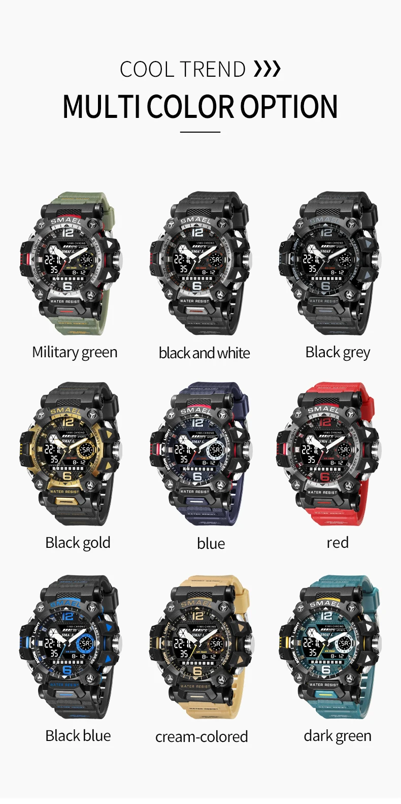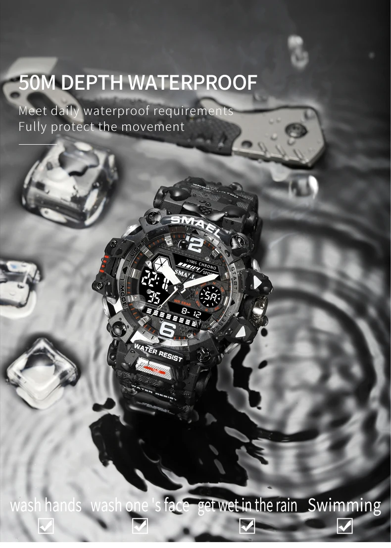 SMAEL montre de sport pour homme 50m étanche montre numérique LED résistant aux chocs 8072 montres militaires numérique armée montres hommes