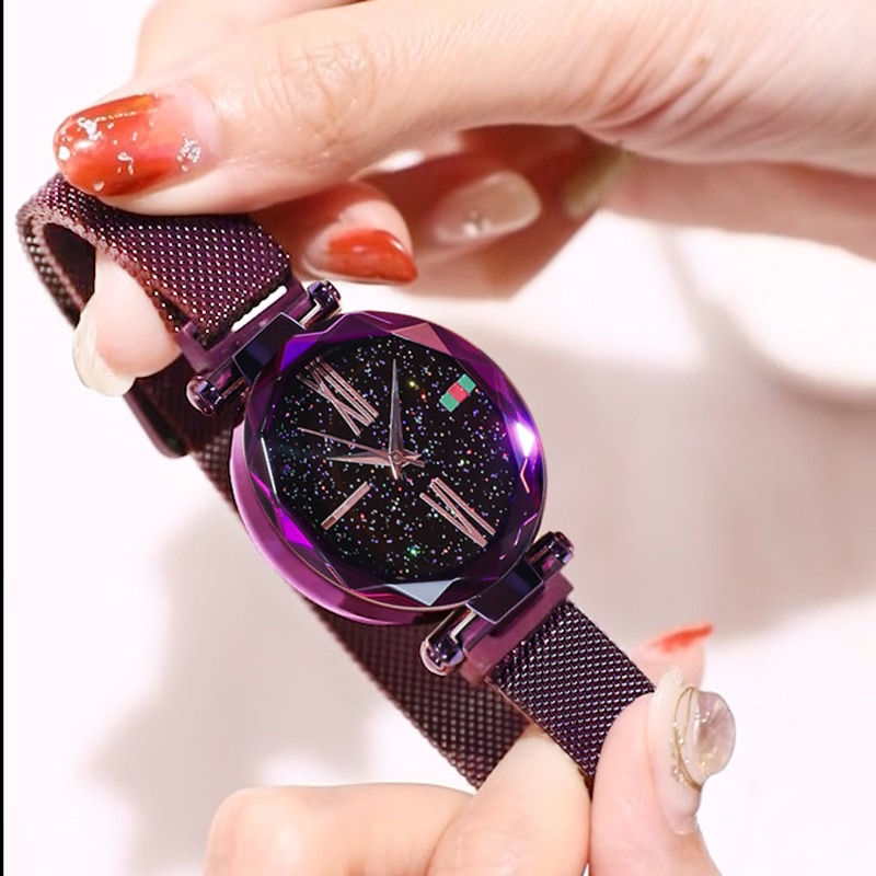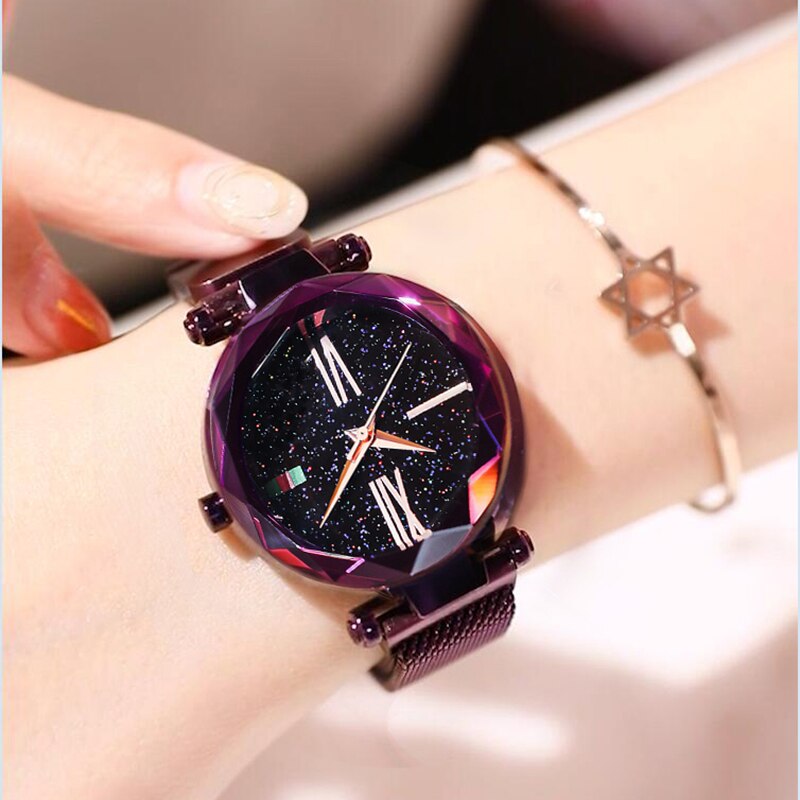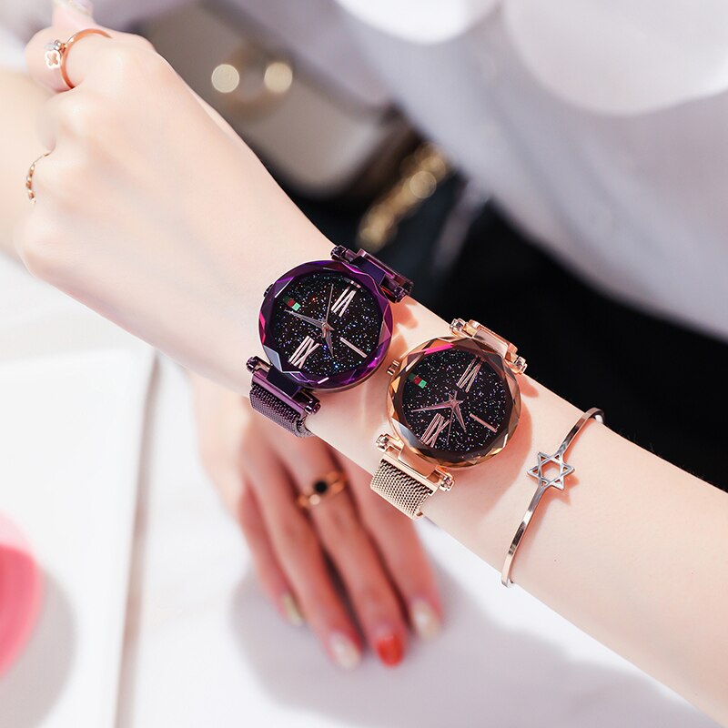 - woman watch 2019: Luxury Rose Gold Women Watch Magnet Starry