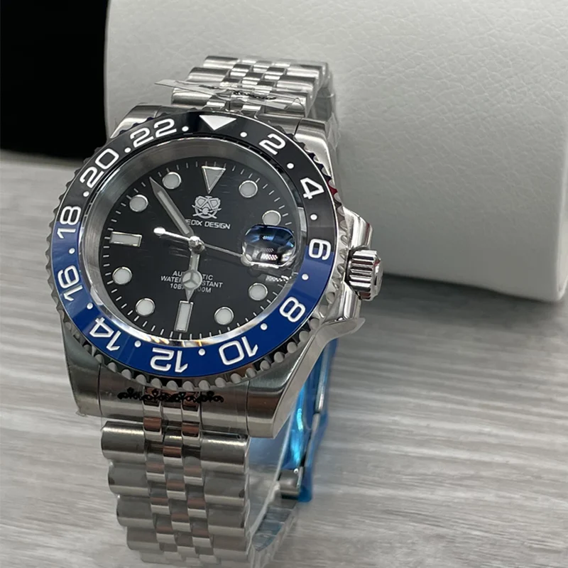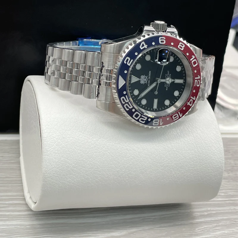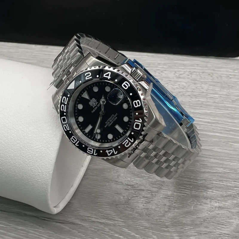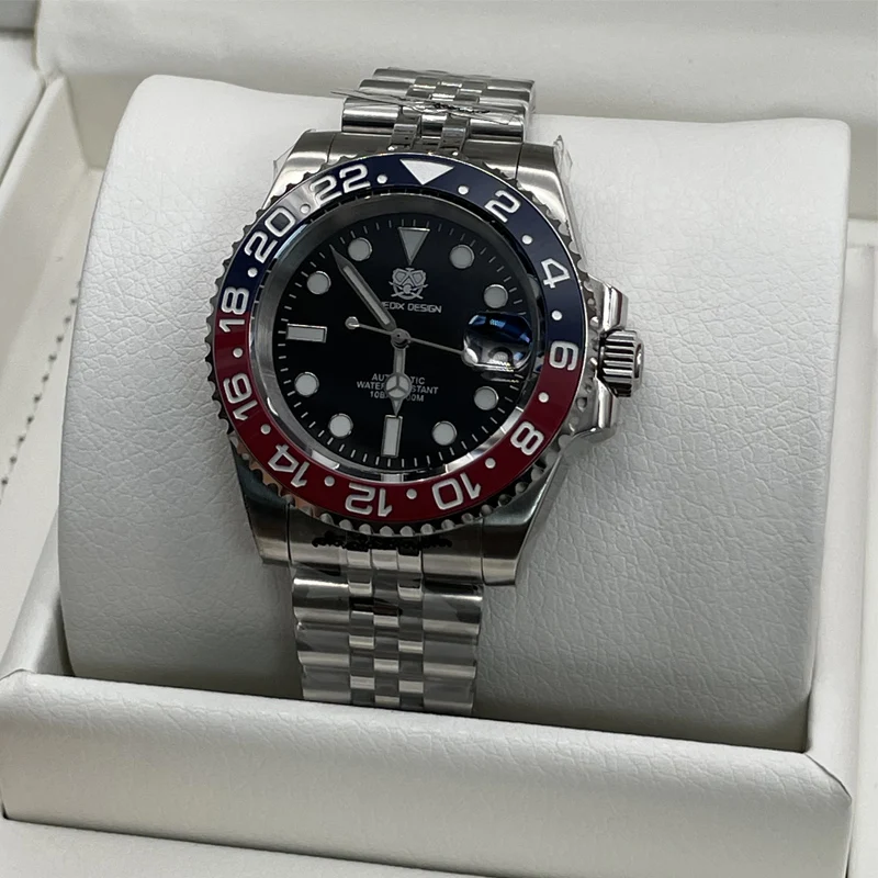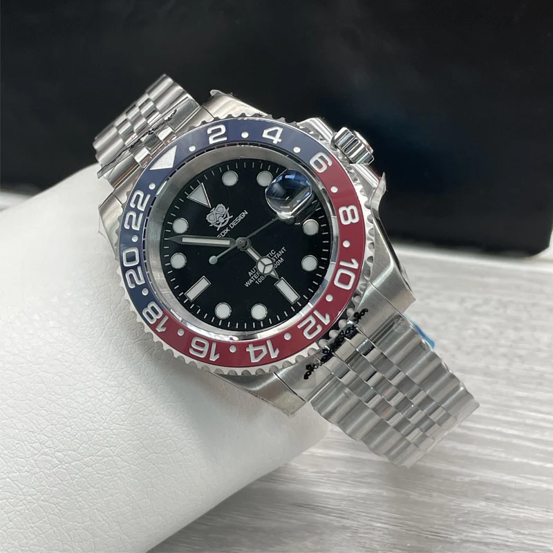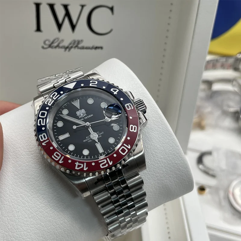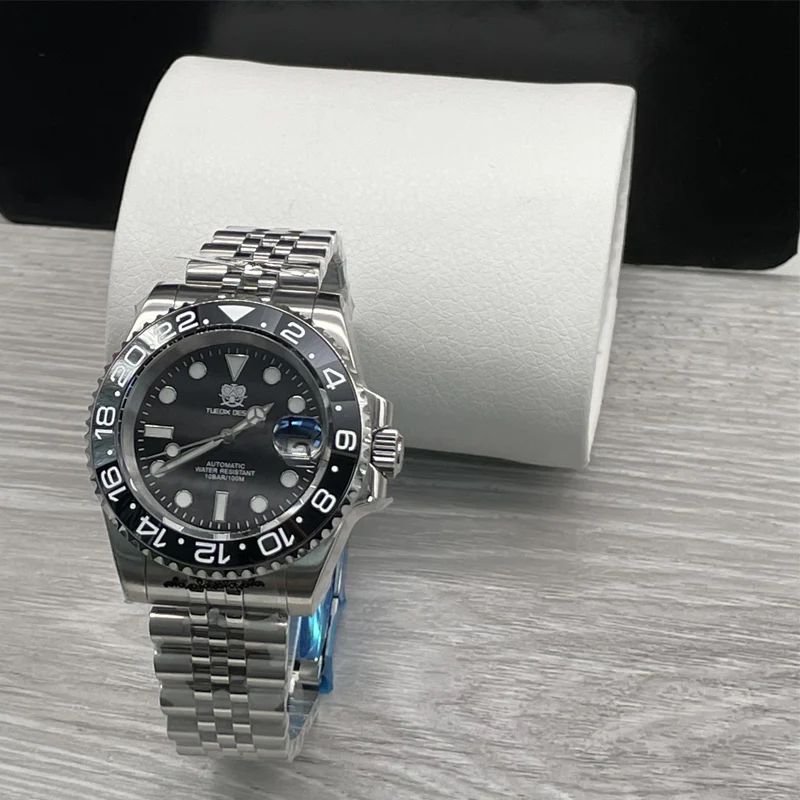 TUEDIX original SEIKO NH35 mouvement montre homme montre-Bracelet à remontage automatique bleu rouge Bracelet d’insertion 100M étanche verre arrière