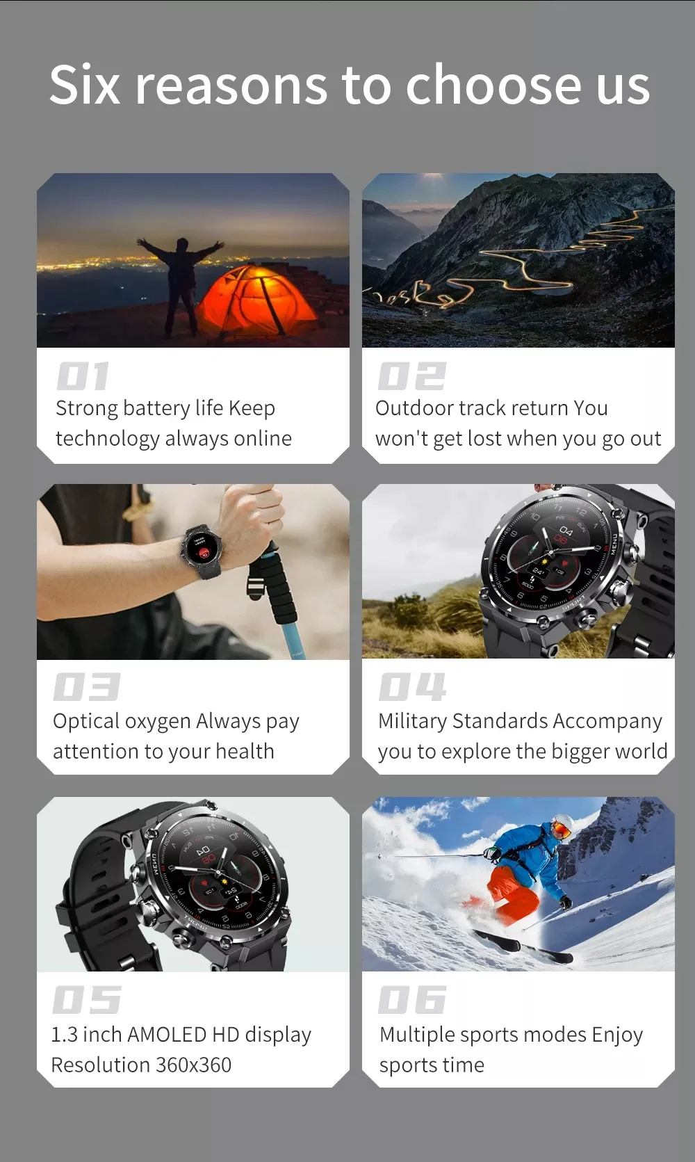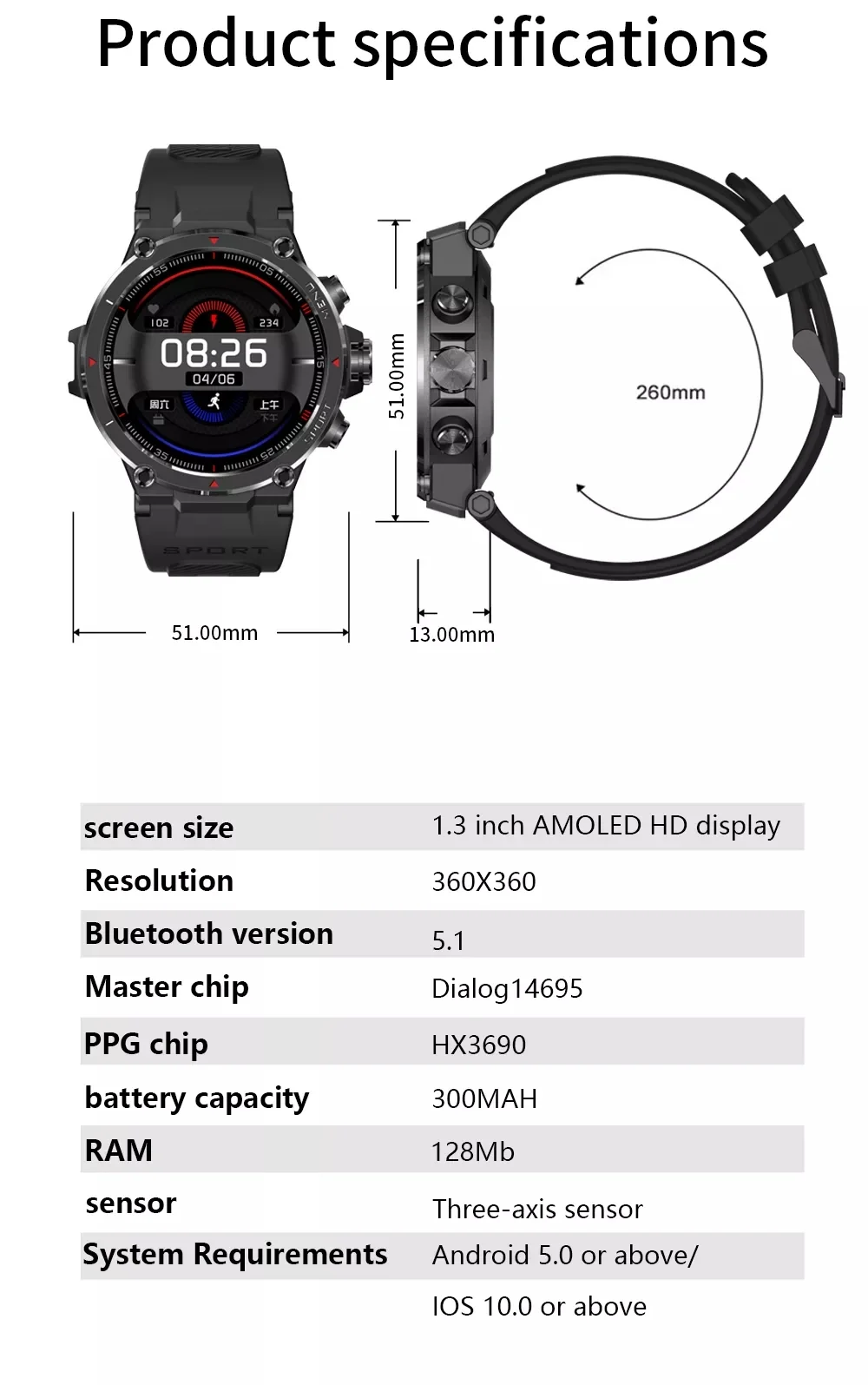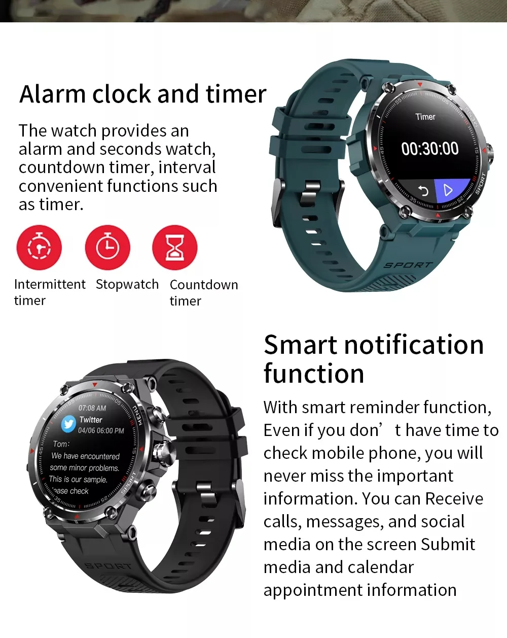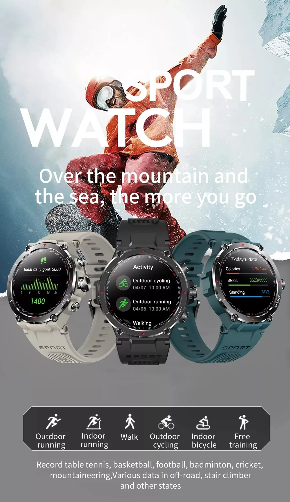 - Activité suivie: Traqueur d'étapes,Traqueur de Distance,Traceur de calories,Tracker d’activité